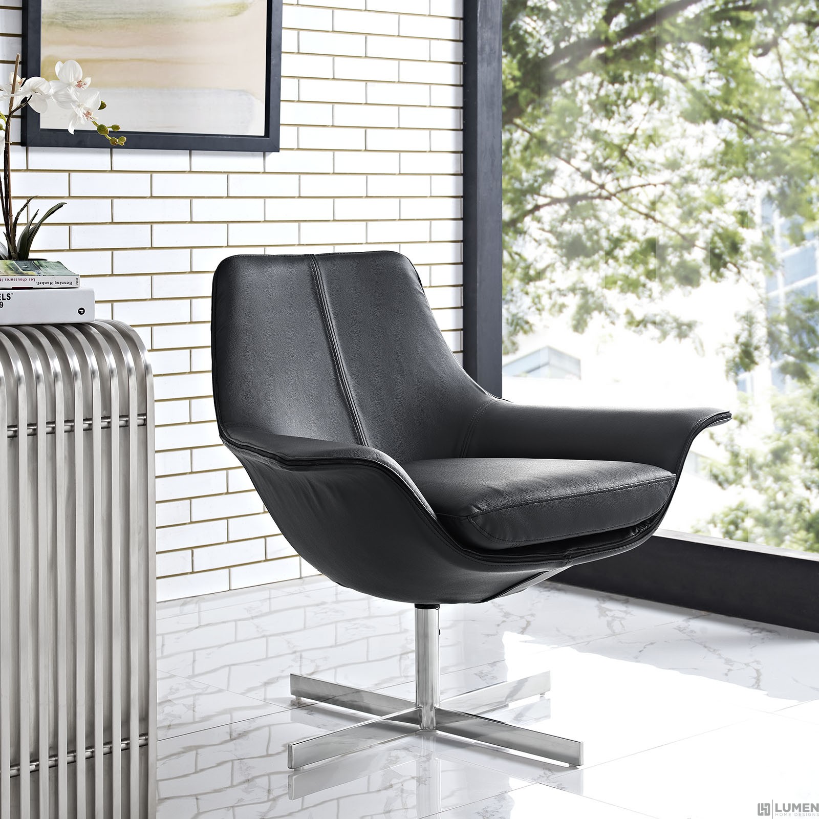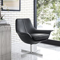 Short Description Modern Lounge Chair Dense Foam Padding Upholstered Vinyl Molded Fiberglass Polished Stainless Steel Base Non-Marking Foot Glides Swiveling Base