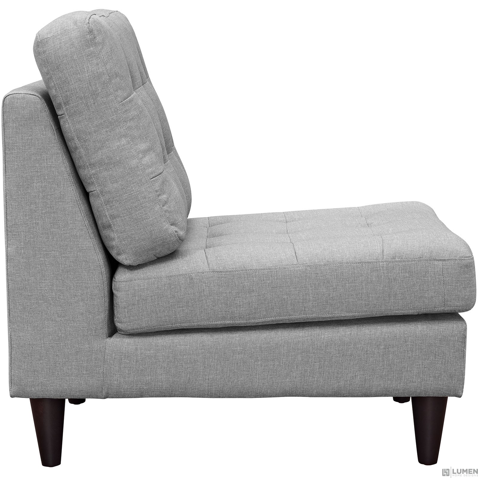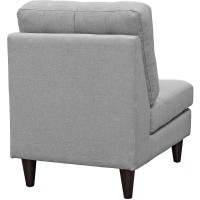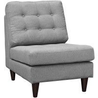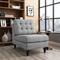 Short Description Mid-Century Modern Armless Chair Deeply Tufted Buttons Black Stained Rubberwood Legs Non-Marking Foot Caps 100% Polyester Material Dense Foam Padding Assembly Required