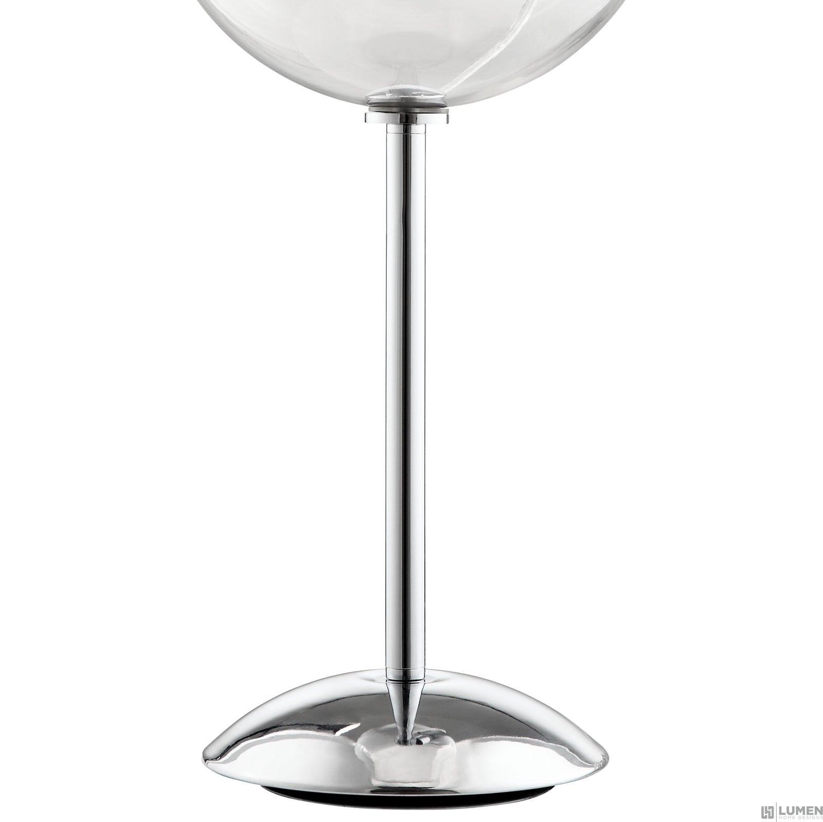 Modern casual table lamp Transparent glass shade Chrome plated metal frame "Takes 1 60 Watt, up to 150 Watt Standard Light Bulb(Not Included)" No assembly required UL Listed and Approved