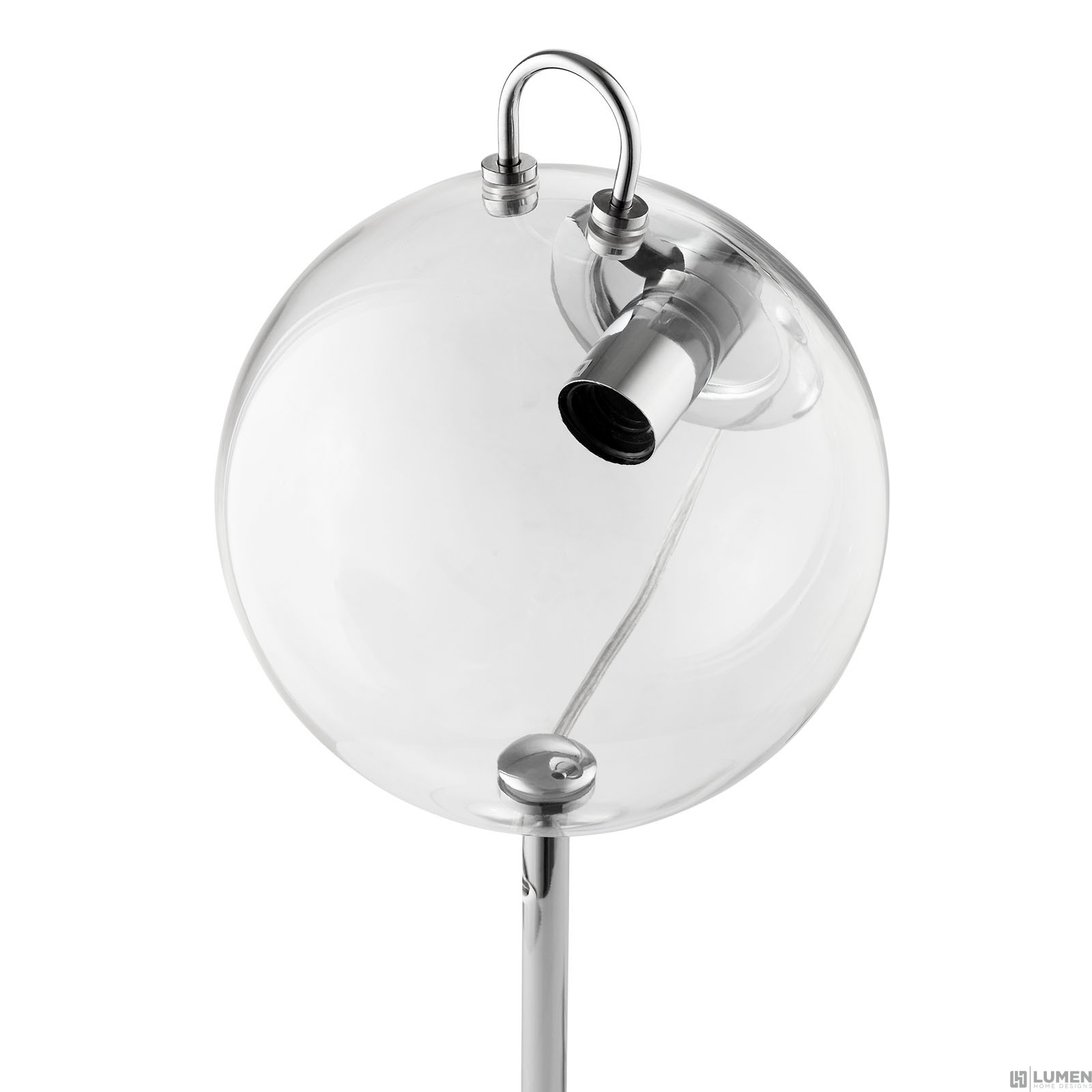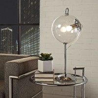 Short Description Modern casual table lamp Transparent glass shade Chrome plated metal frame "Takes 1 60 Watt, up to 150 Watt Standard Light Bulb(Not Included)" No assembly required UL Listed and Approved