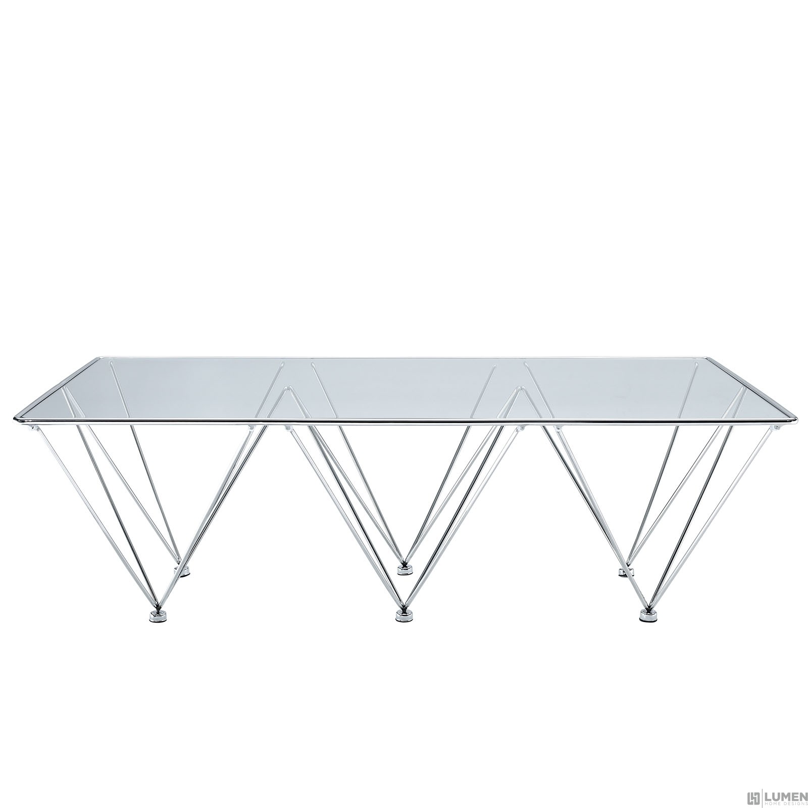 Short Description Modern rectangular coffee table Polished stainless steel frame Thick tempered glass top