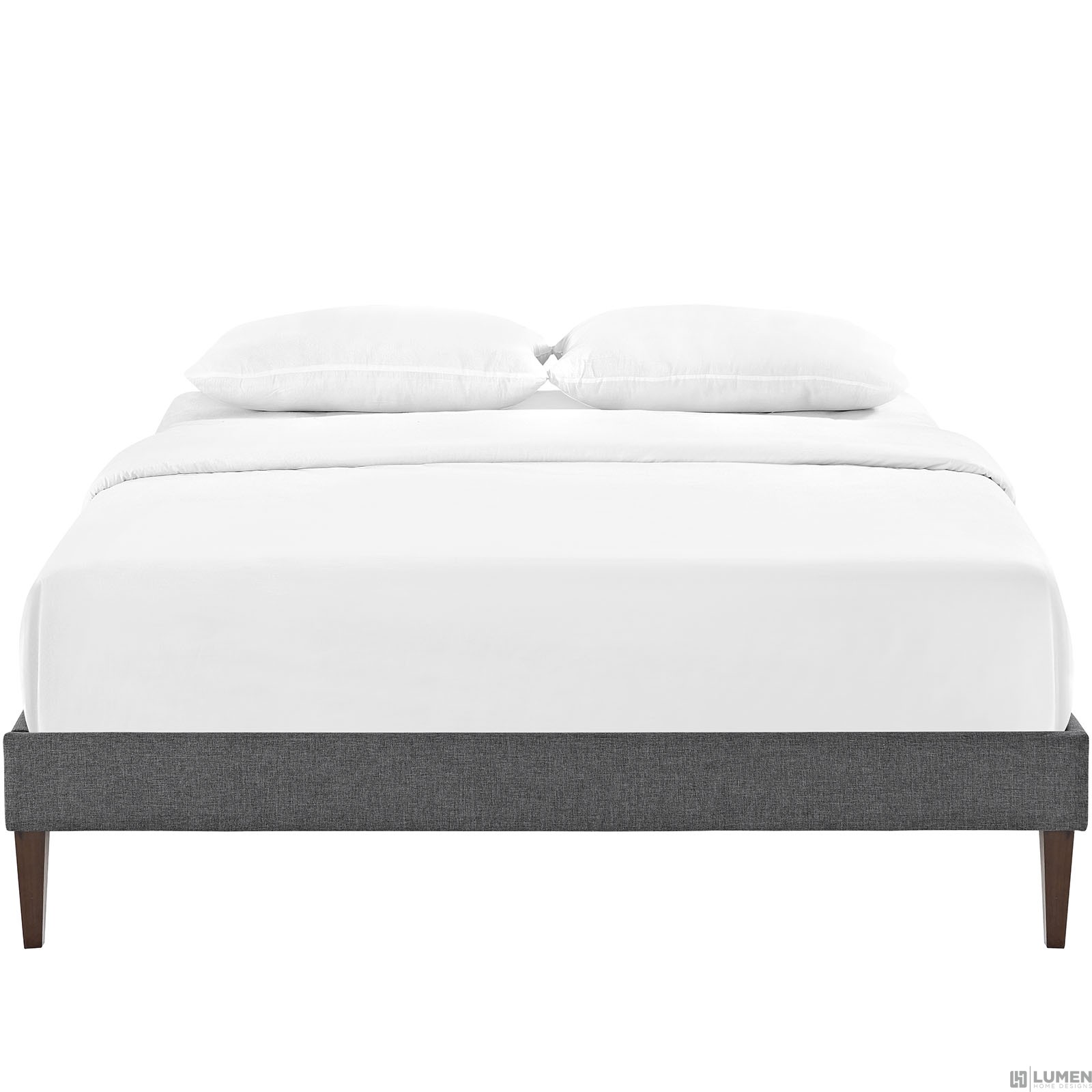 Short Description Solid Wood Frame Upholstered in Polyester Ten Wood Support Slats Center Rail with Support Two Legs Non-Marking Foot Glides Mattress not Included Assembly Required