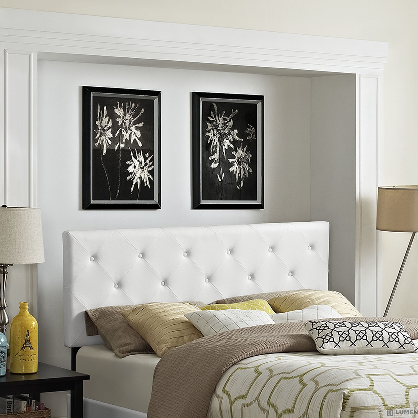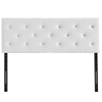 Short Description Fine Vinyl Upholstery Deep Button Tufting Solid Wood Frame Particleboard Panel Dense Foam Padding Mounts in Four Locations Assembly Required