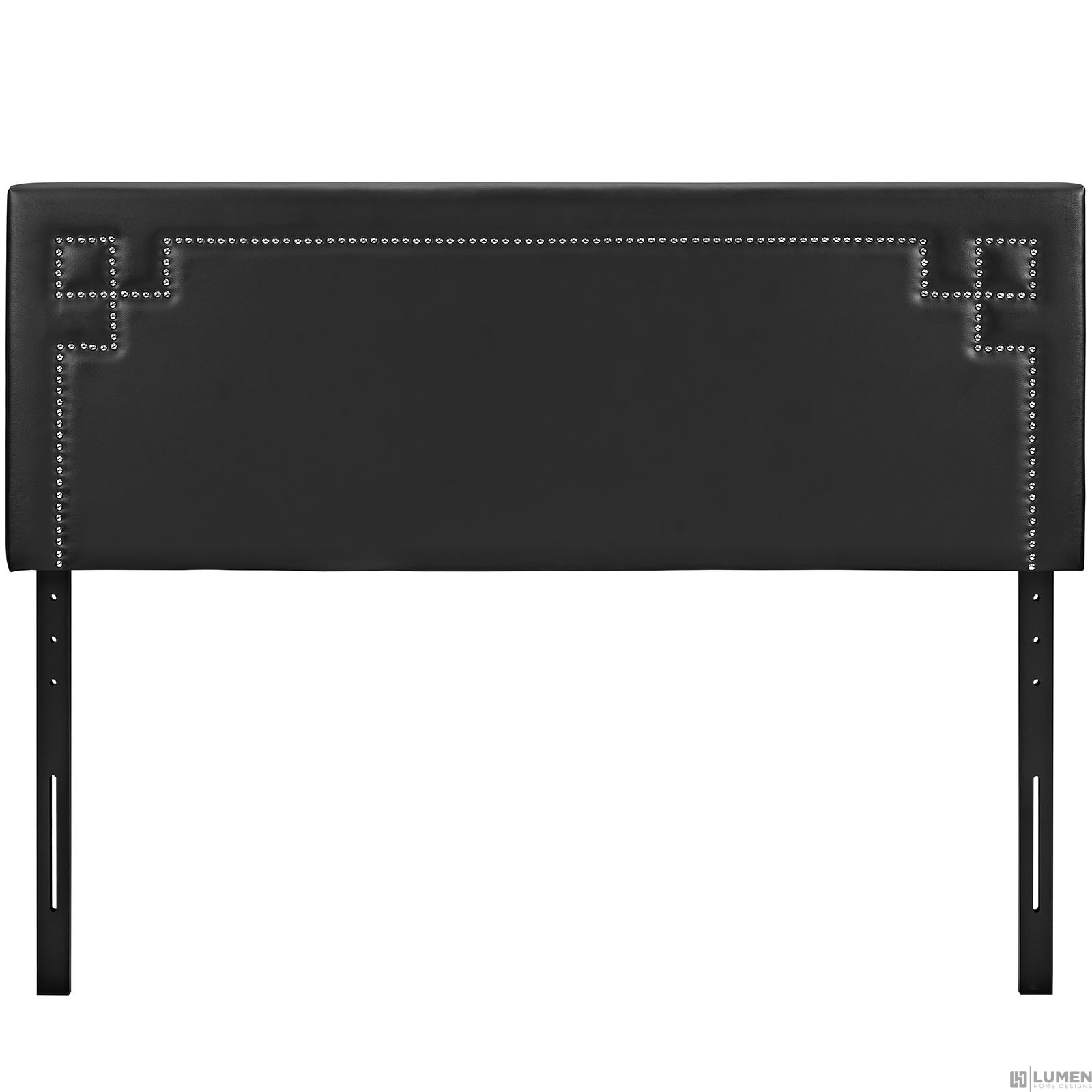 Short Description Fine Vinyl Upholstery Silver Accent Copper Buttons Solid Wood Frame Particleboard Panel Dense Foam Padding Mounts in Four Locations Assembly Required