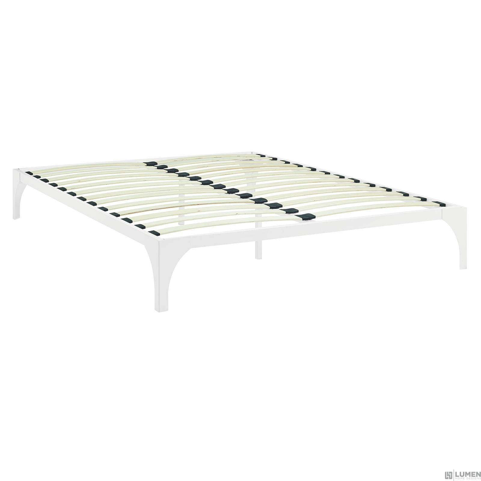 Modern Platform Bed Frame Sturdy Powder Coated Steel Frame Slatted Poplar Wood Support System Weight Capacity Up To 1300 lbs Non-Marking Foot Pads Assembly Required