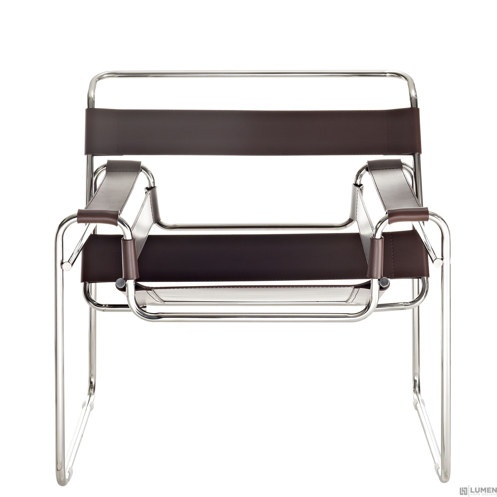 Stainless steel frame Taut faux leather slings Rubber floor pads Fully assembled