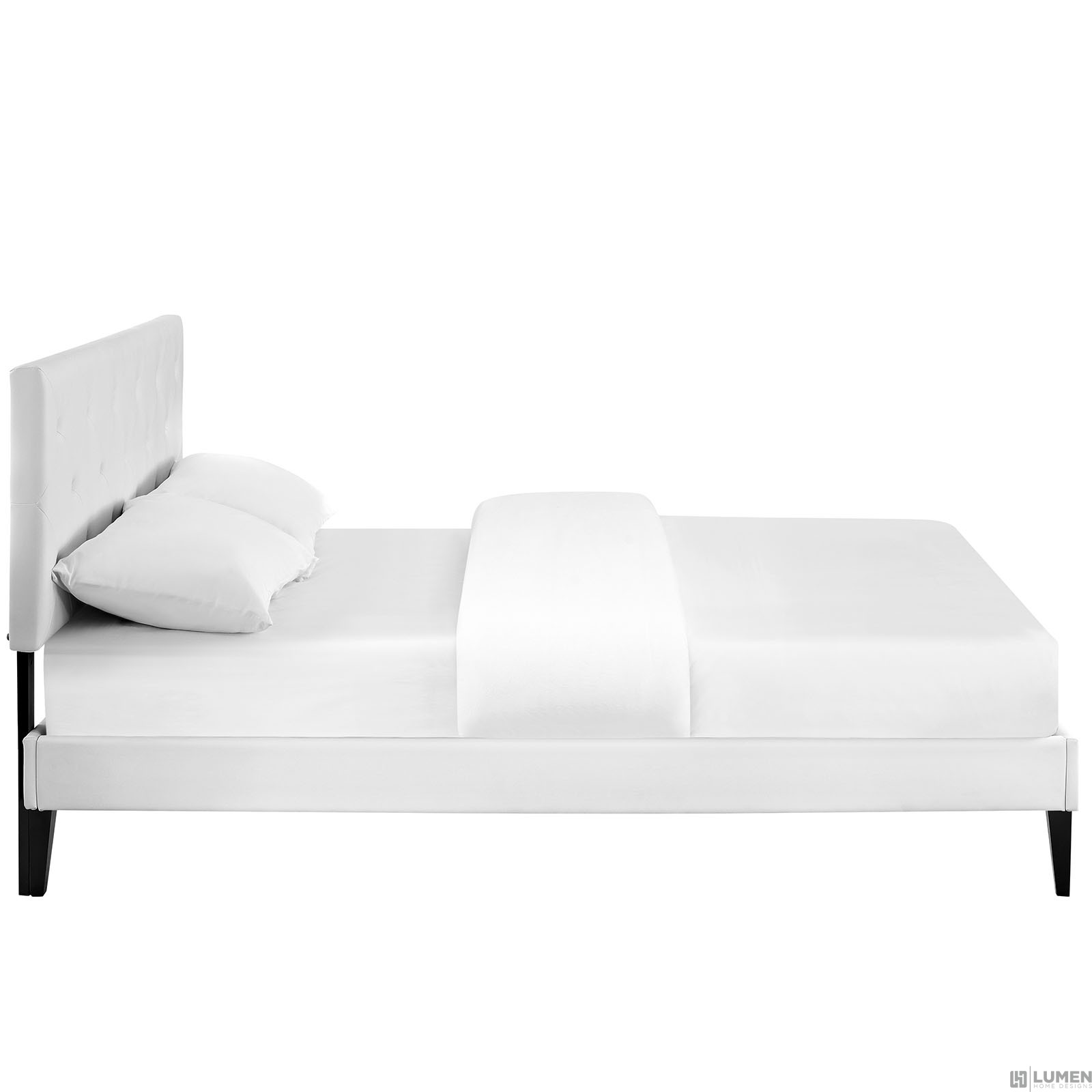 Fine Vinyl Upholstery Ten Wood Support Slats Wood Frame / Particleboard Panel Center Rail with Support Two Legs Mounts in Four Locations Dense Foam Padding Non-Marking Foot Glides