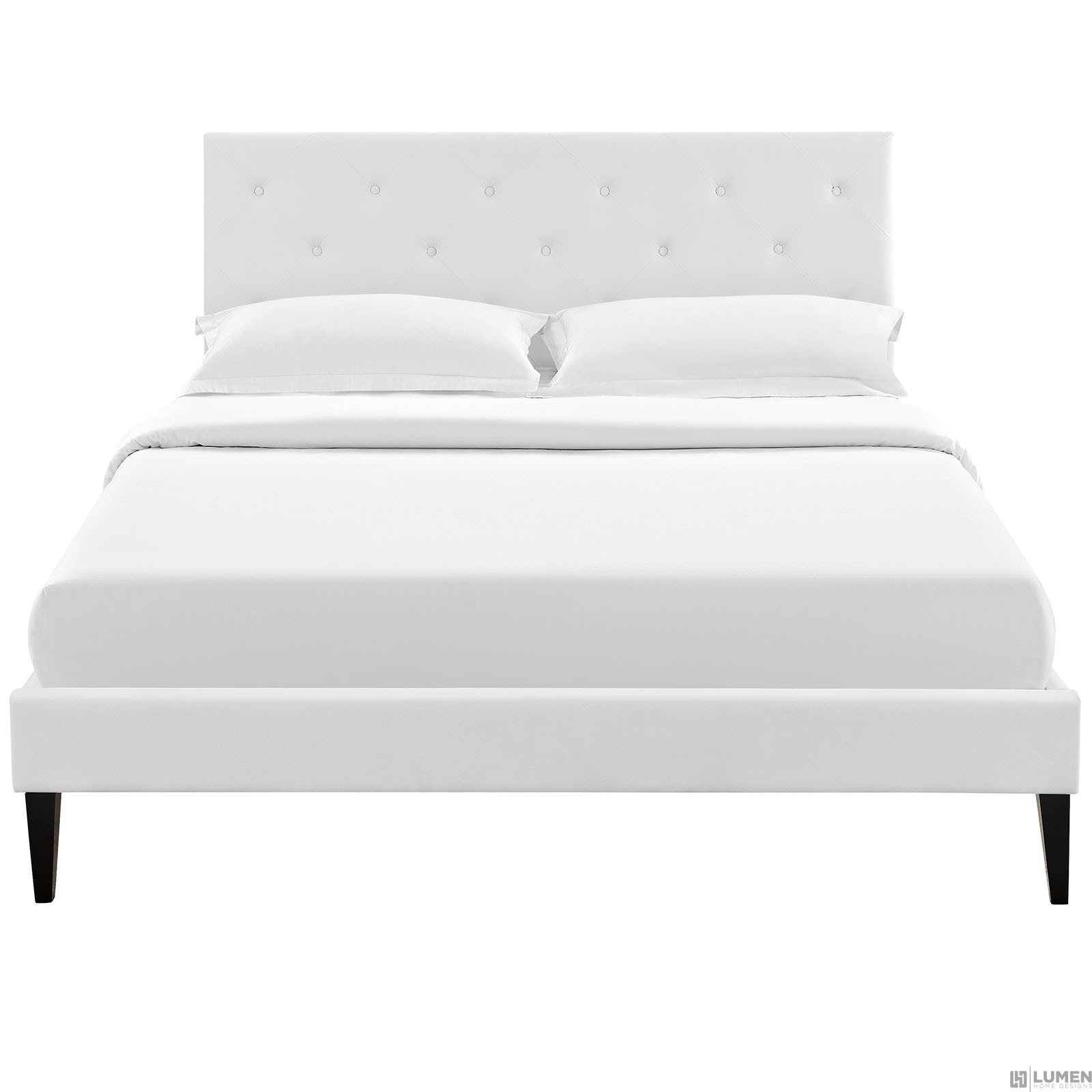 Short Description Fine Vinyl Upholstery Ten Wood Support Slats Wood Frame / Particleboard Panel Center Rail with Support Two Legs Mounts in Four Locations Dense Foam Padding Non-Marking Foot Glides