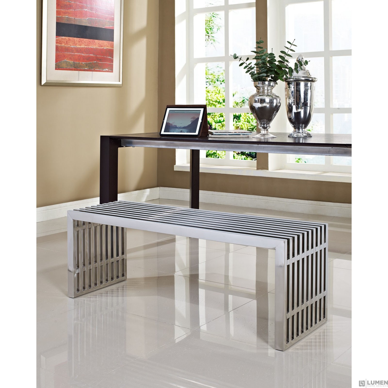 Short Description Perfect Modern Bench or Table Easy to Clean For Indoor Use Stainless Steel Construction