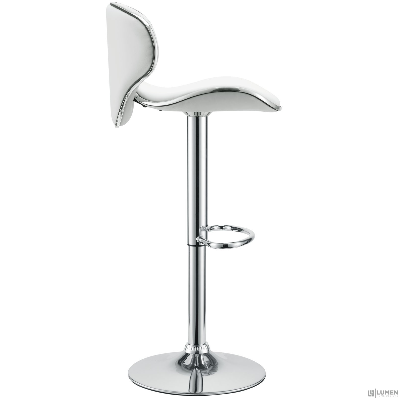 Short Description Fits most bars and countertops Funky 1950s retro look Padded vinyl wave seat & back Height adjustable hydraulic lift Polished chrome-finished base Tubular footrest for support Easy wipe clean surface