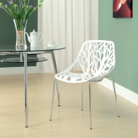 Short Description Organic leafy forest motif Either indoor or outdoor use Modern dining or accent chair Chrome plated steel base Molded plastic seat Stackable Weight Capacity: 330 Pounds