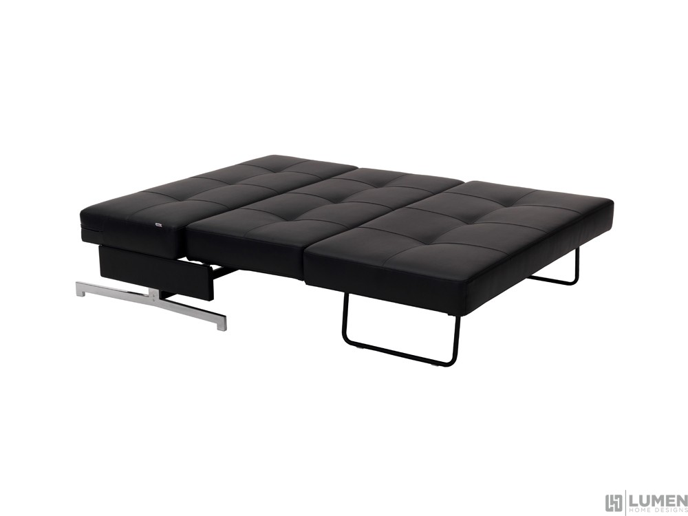 Short Description If you need an extra seating option in your living room, this compact minimalist sofa will fit in perfectly with your existing furniture. Its clean contemporary lines can be dressed either up or down through additional decorative pillows. And at the end of the day, this piece quickly converts into a comfy bed. The dimensions of this modern sleeper make it suitable for smaller spaces, especially those in need of doubly duty furnishings. Pick and choose your match! This sofa is available in black or white. Essentials about this piece: • Expertly upholstered in premium leatherette. • Stainless steel legs. • Some assembly required. • Color scheme: Black or white. • Dimensions: 27.6" H x 47.3" L x 36.2" D.