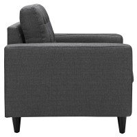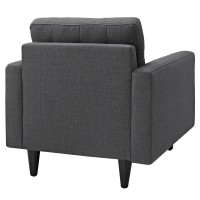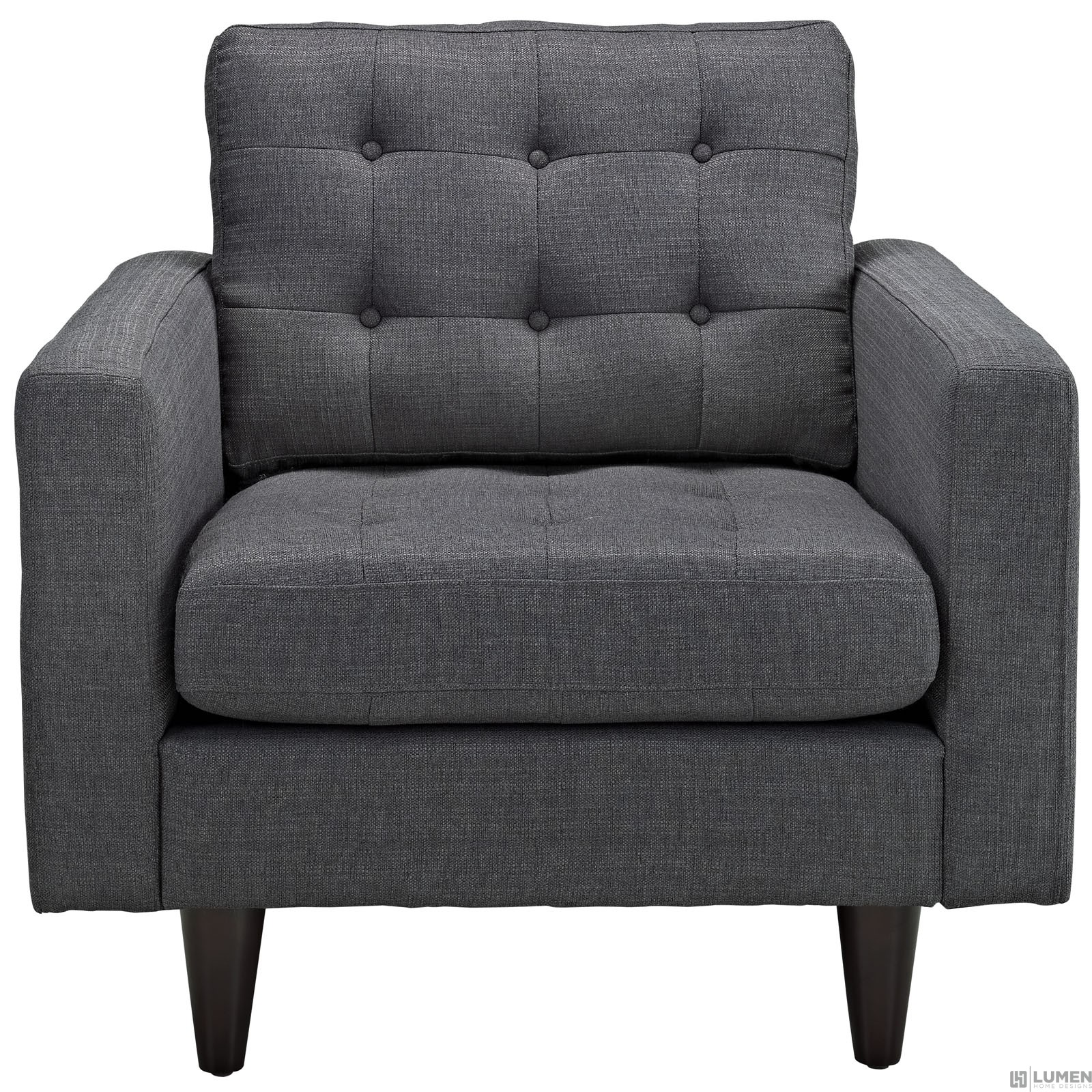 Short Description Modern armchair Deeply tufted buttons Polyester upholstery Solid wooden legs Glides to prevent scratching