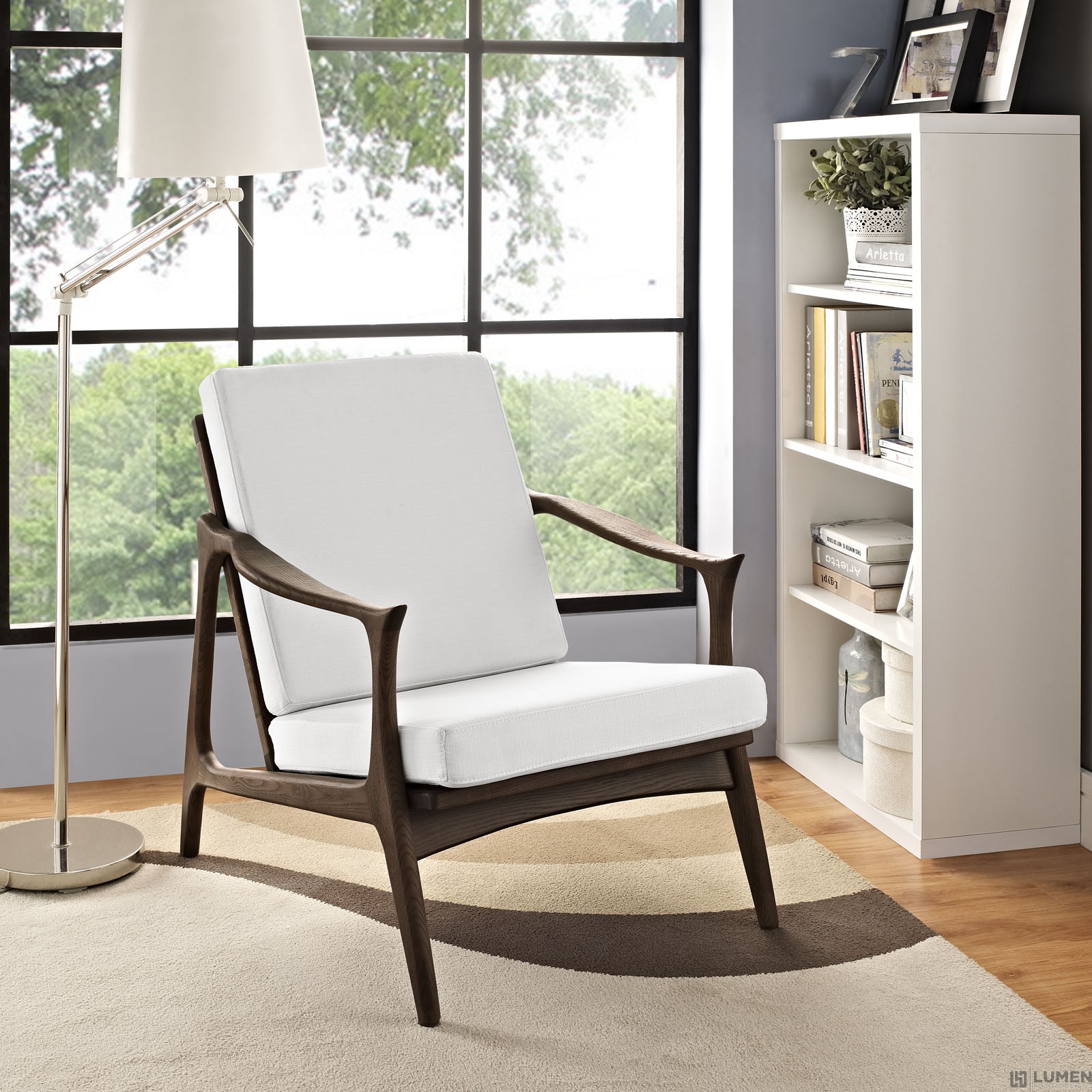 Short Description Solid Ash wood Frame Generously sized cloth cushions Finely upholstered polyester Cushions fully removable "Spot clean fabric, wipe clean wood" Some assembly required