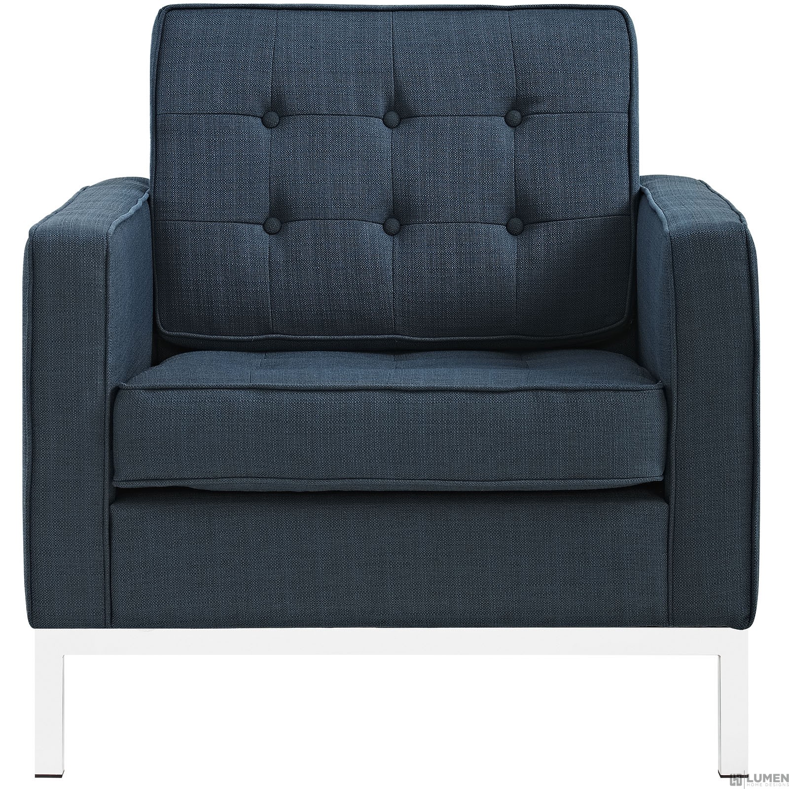 Short Description Fine Polyester Upholstery Tufted Seat and Back with Buttons Tubular Stainless Steel Frame Removable Zippered Cushion Cover Non-Marking Foot Pads