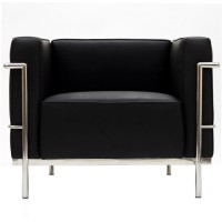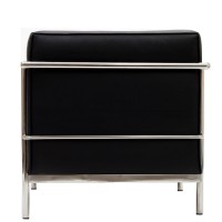 Mid-Century Modern Armchair Genuine Leather Seating Surface Tubular Stainless Steel Frame Foot caps to prevent scratching