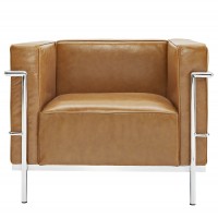 Mid-Century Modern Armchair Genuine Leather Seating Surface Tubular Stainless Steel Frame Foot caps to prevent scratching