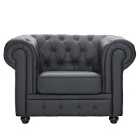 For areas seeking cultured elegance Tightly tailored rolled arms Deep tufting for maximal effect Genuine leather seat and back Steel base with solid wood legs