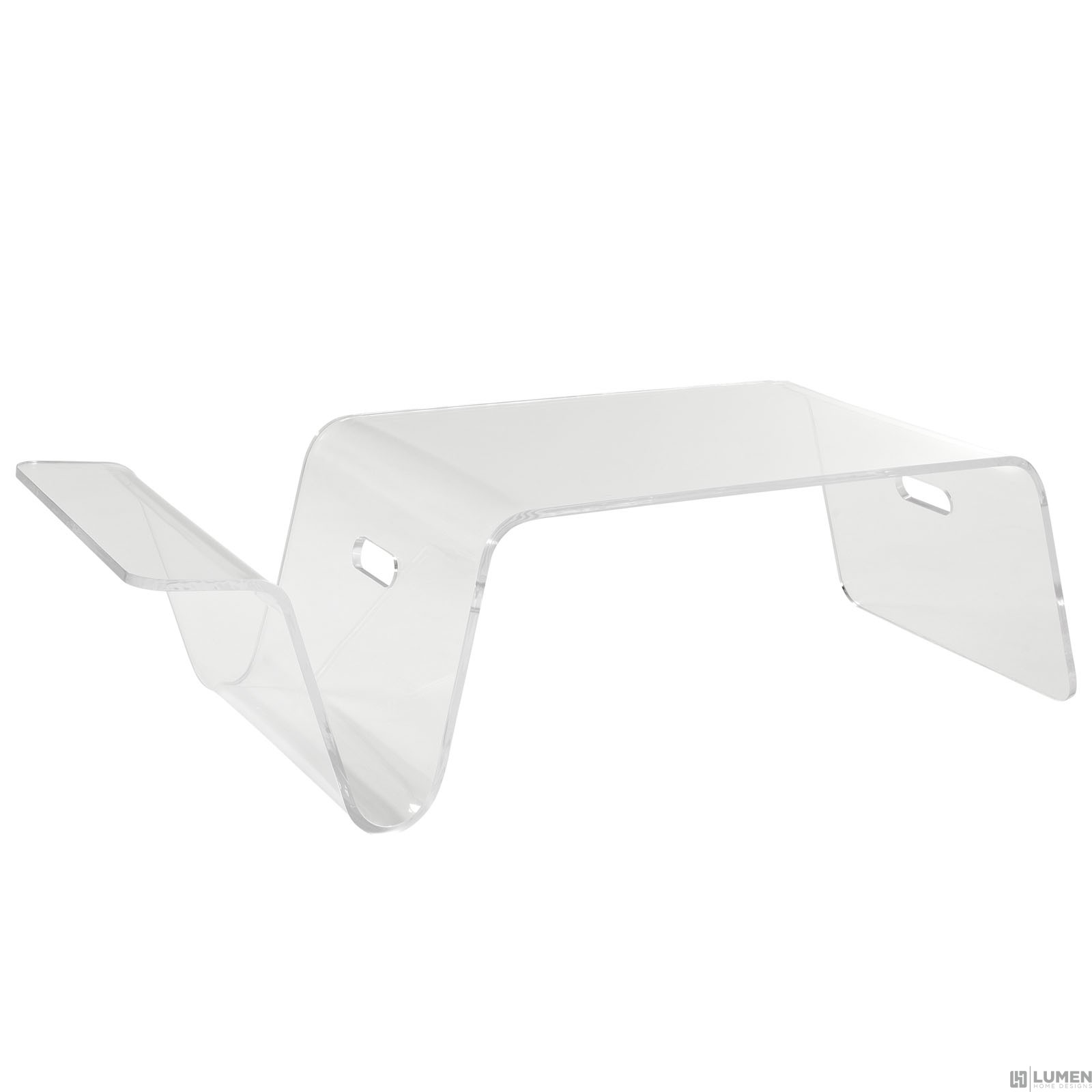 Perfect by sofa or bed Doubles as a laptop stand Convenient magazine holder Durable acrylic construction Easy wipe-clean surface Comes fully-assembled