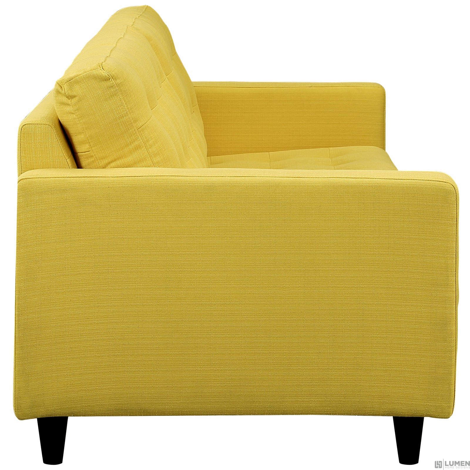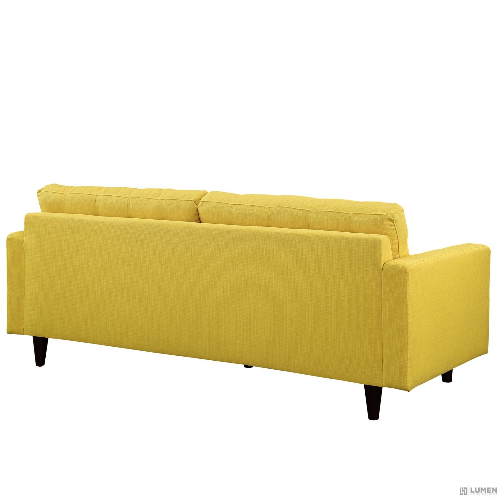 Modern Sofa Deeply tufted buttons Polyester upholstery Solid wooden legs Glides to prevent scratching Weight capacity 660 lbs.