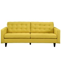 Short Description Modern Sofa Deeply tufted buttons Polyester upholstery Solid wooden legs Glides to prevent scratching Weight capacity 660 lbs.