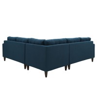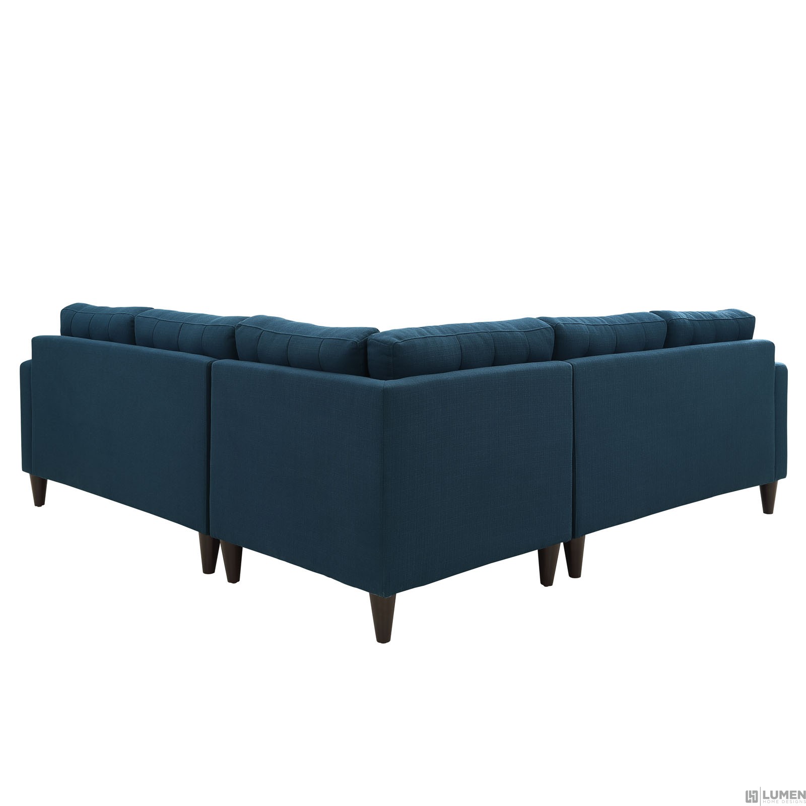Two loveseats and corner sectional Deeply tufted buttons Fine polyester upholstery Solid rubberwood legs Glides to prevent floor scratching