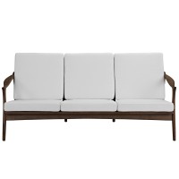 Short Description Mid-century style sofa Solid ash wood construction Finely upholstered polyester Cushions fully removable "Spot clean fabric, wipe clean wood" No assembled required
