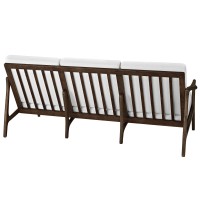 Mid-century style sofa Solid ash wood construction Finely upholstered polyester Cushions fully removable "Spot clean fabric, wipe clean wood" No assembled required