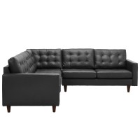 Short Description Two loveseats and corner sectional Deeply tufted buttons Finely upholstered bonded leather Solid rubberwood legs Glides to prevent floor scratching