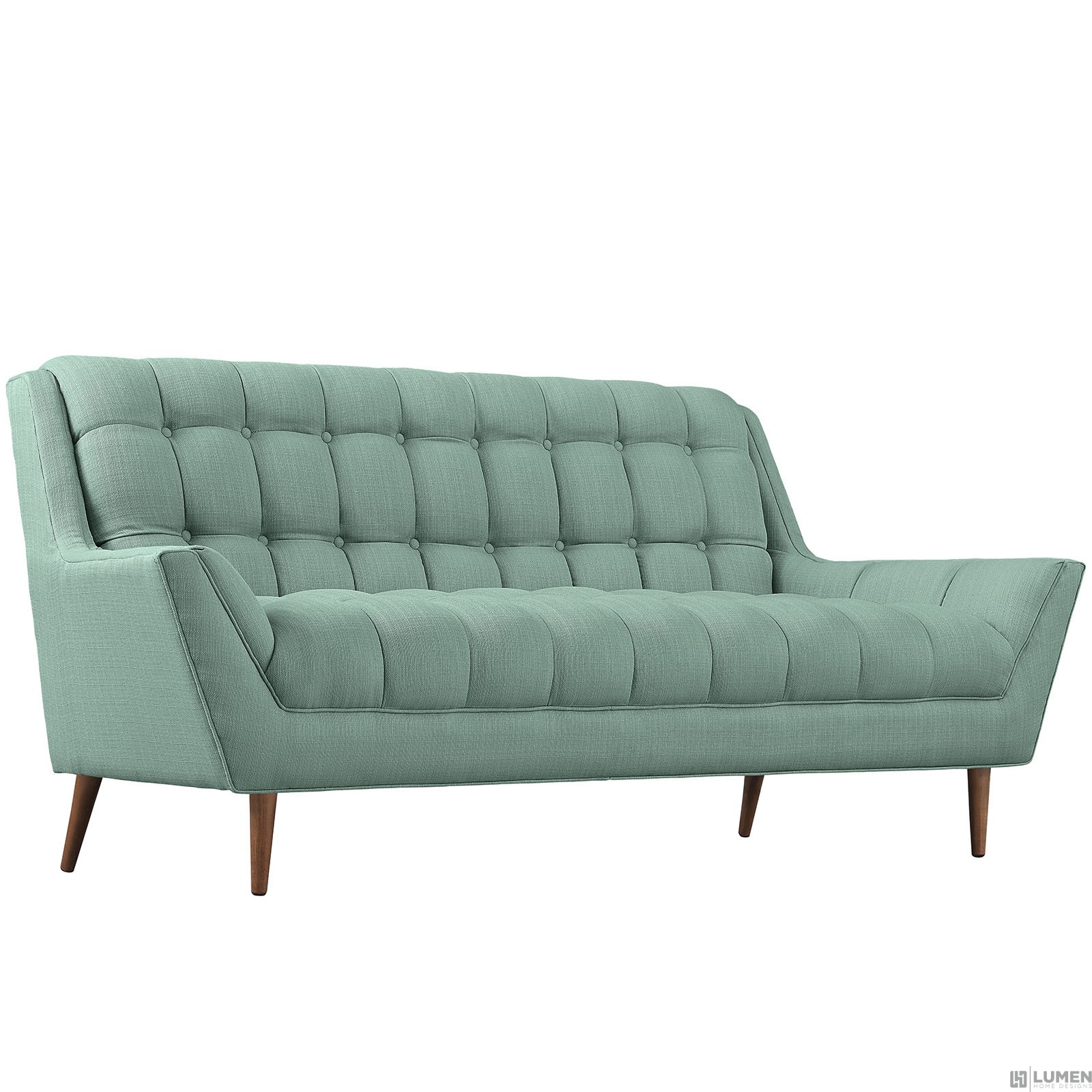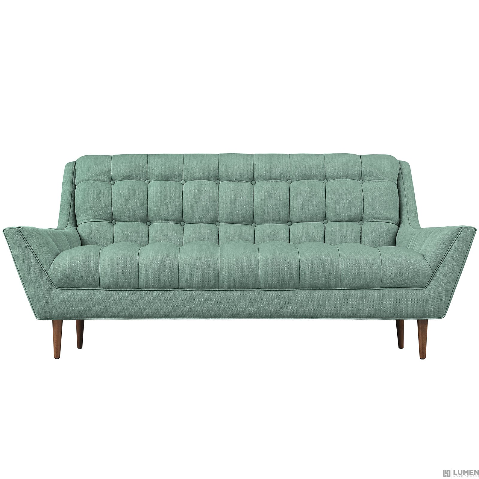Short Description Walnut Stained Beech Wood Legs Plastic Floor Glides Finely Upholstered Fabric Sofa Weight Capacity - 1323 lbs.