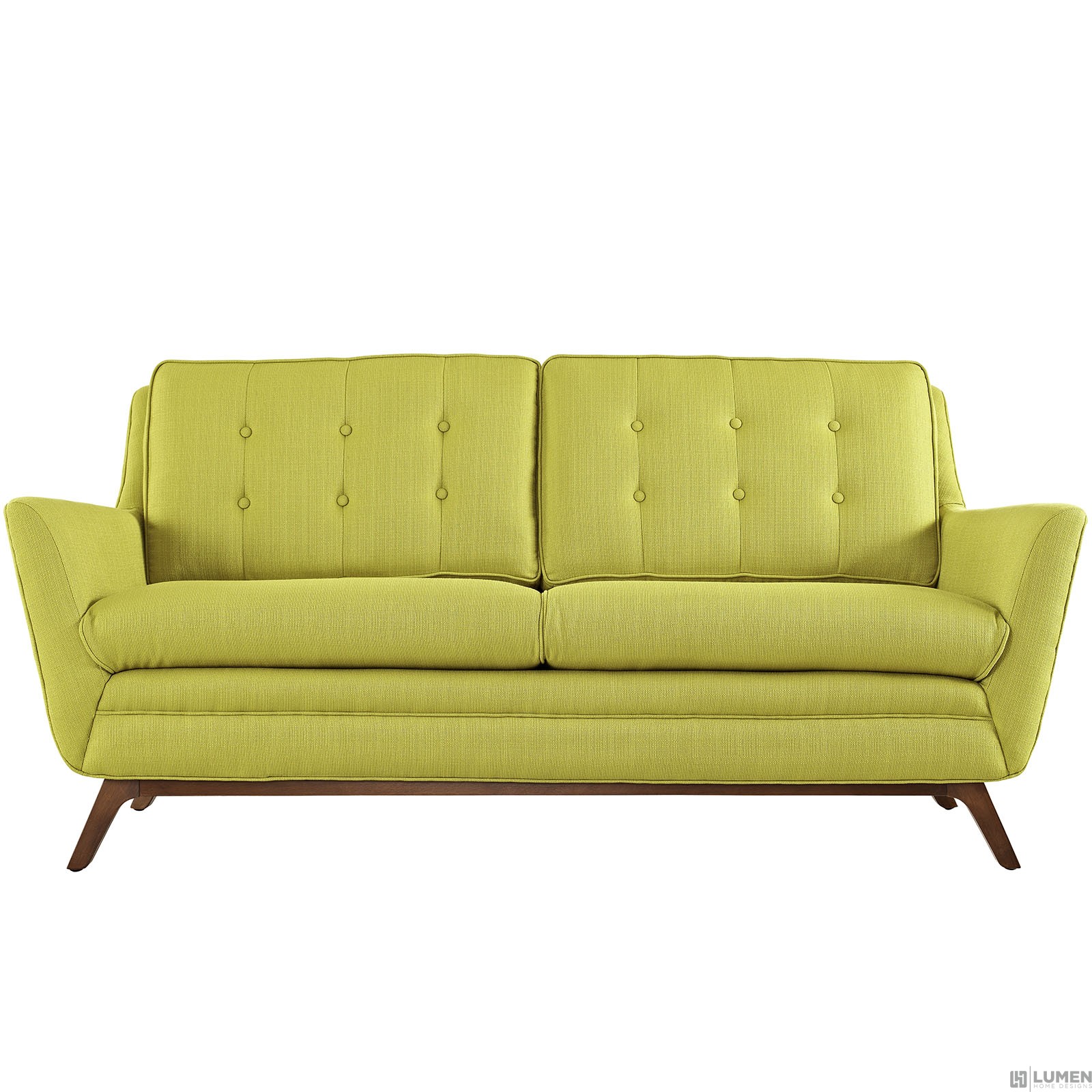 Short Description Walnut Stained Beech Wood Legs Plastic Floor Glides Finely Upholstered Fabric Sofa Weight Capacity - 1323 lbs.