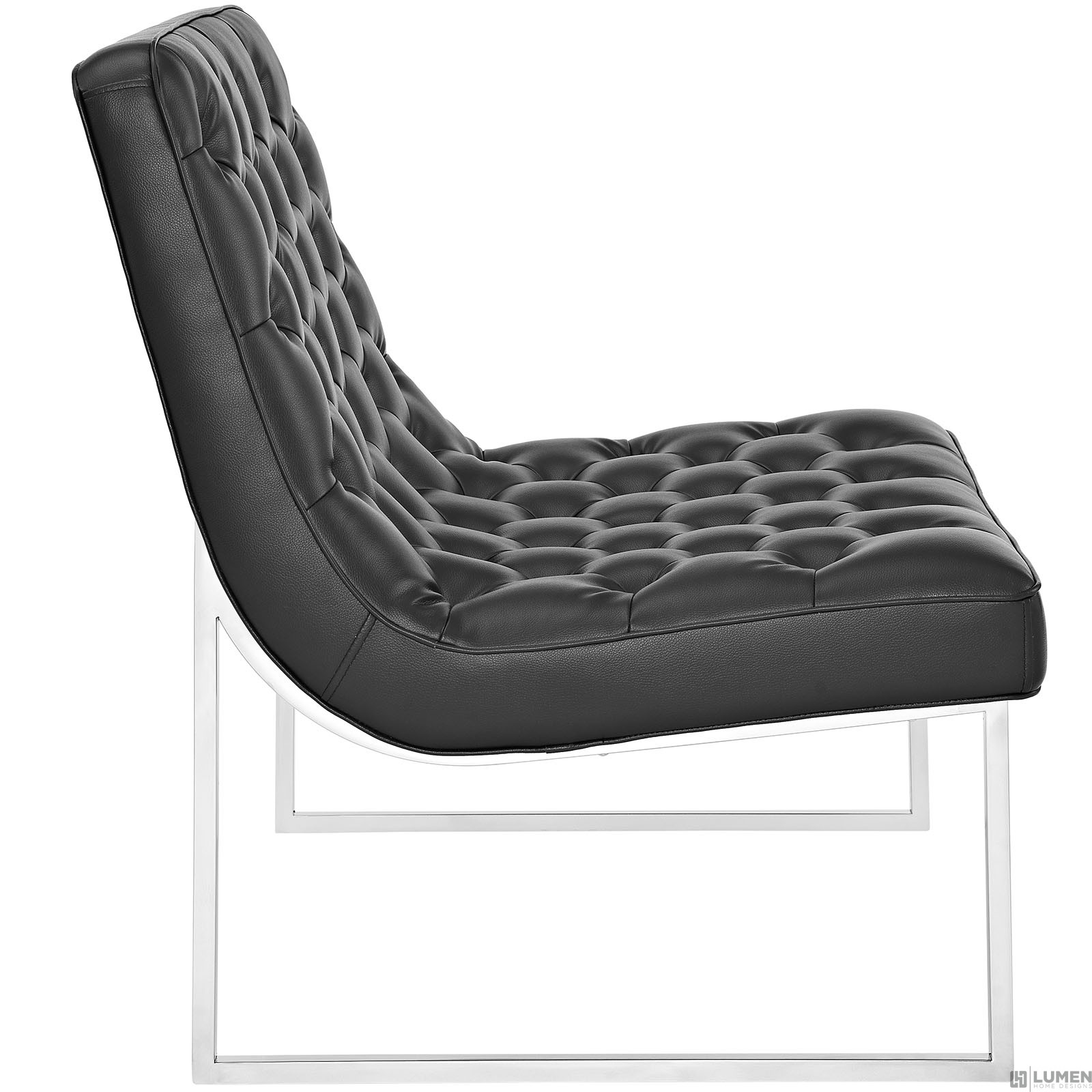 Contemporary Lounge Chair Padded Vinyl Cushion Polished Stainless Steel Base Non-Marking Foot Pads Assembly Required