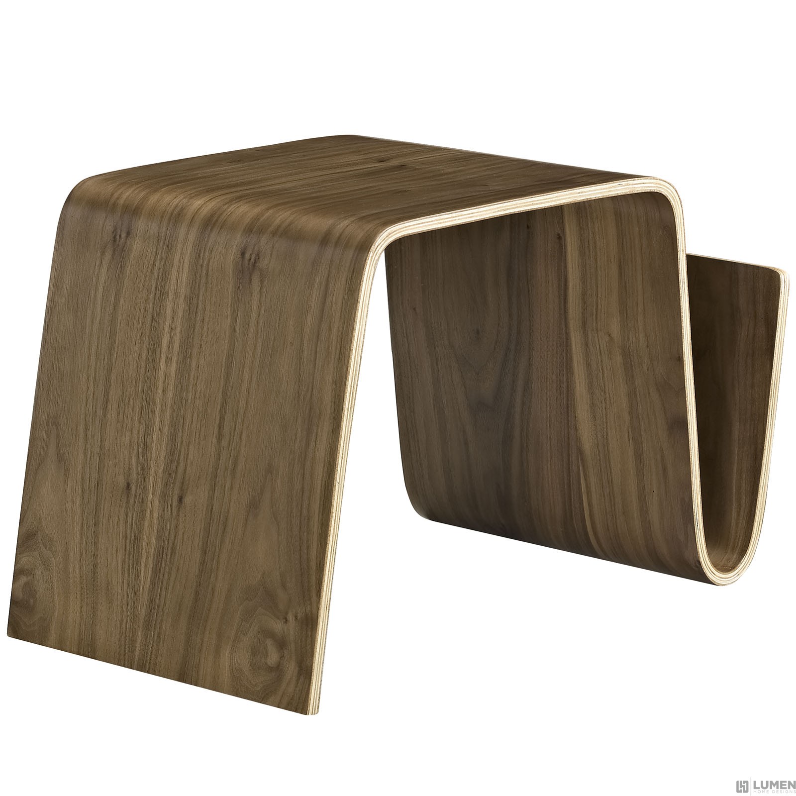 Short Description Modern Side Table Continuous Bentwood Sheet Covered in Walnut Veneer Easy Wipe-Clean Surface Felt Floor Pads Comes Fully-Assembled