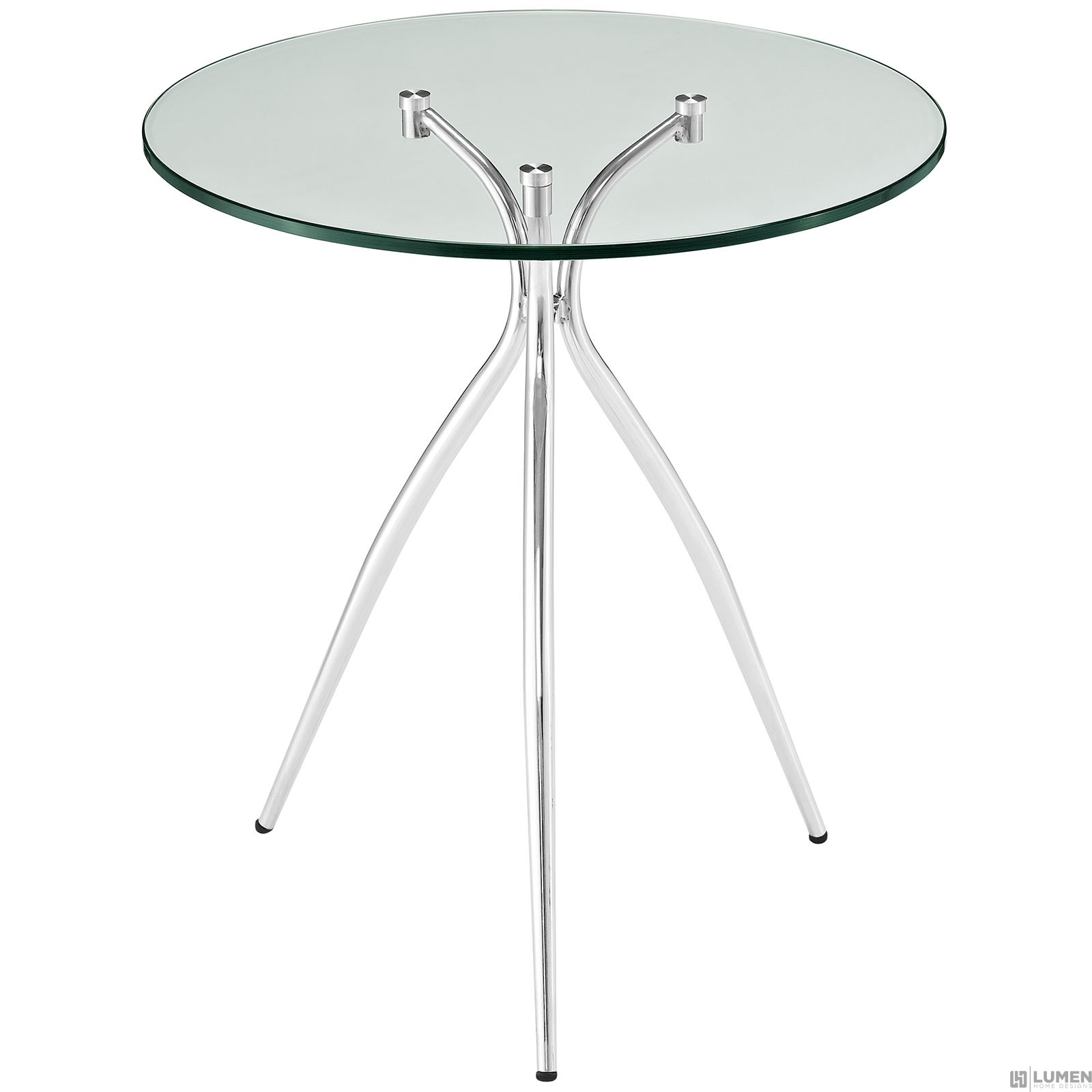 Short Description Modern Side Table Transparent Tempered Glass Top Polished Stainless Steel Base Non-Marking Plastic Foot Glides Assembly Required