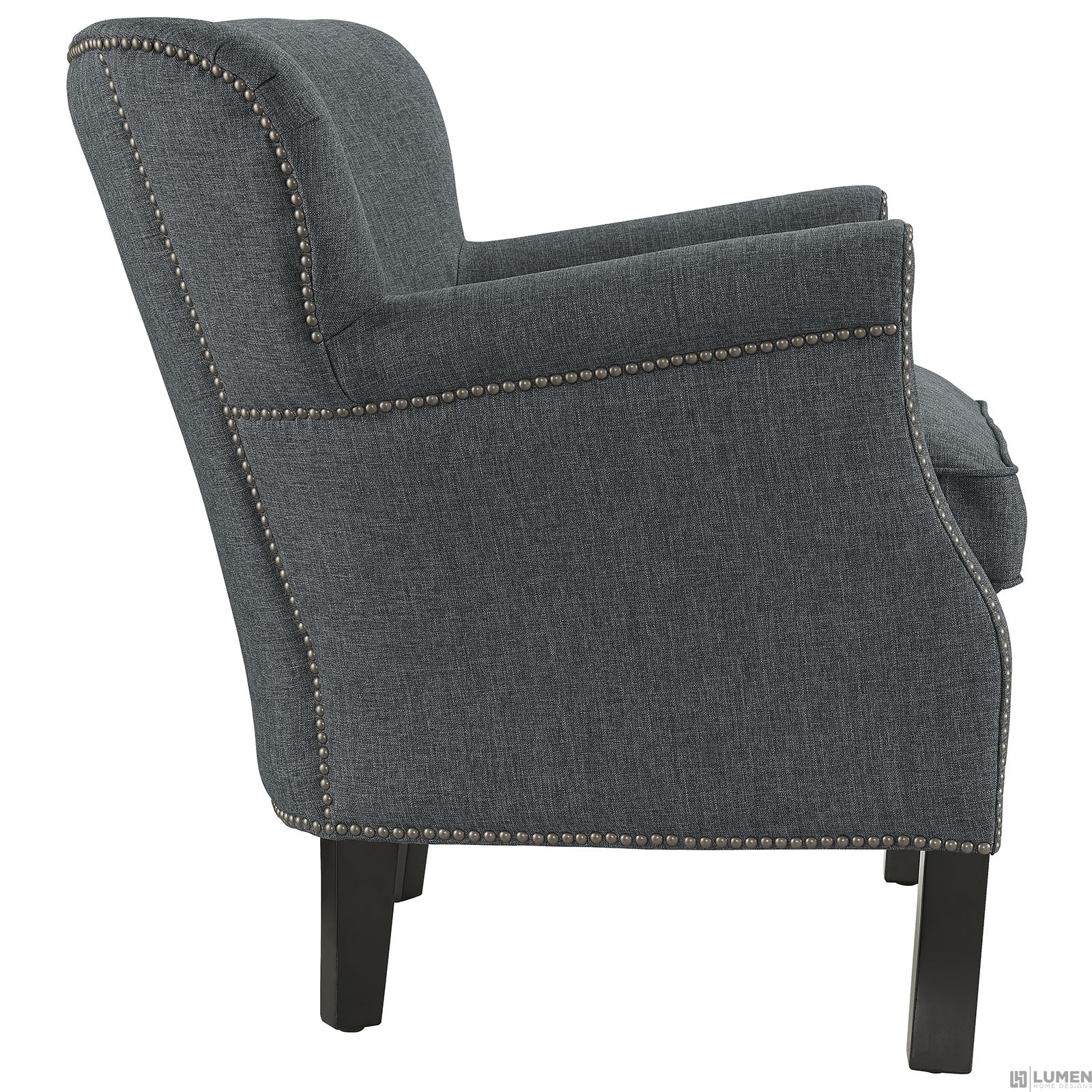 Short Description Fine Polyester Upholstery Dense Foam Cushioning Black Stained Birch Wood Legs Non-Marking Plastic Foot Glides Nailhead Trim Assembly Required