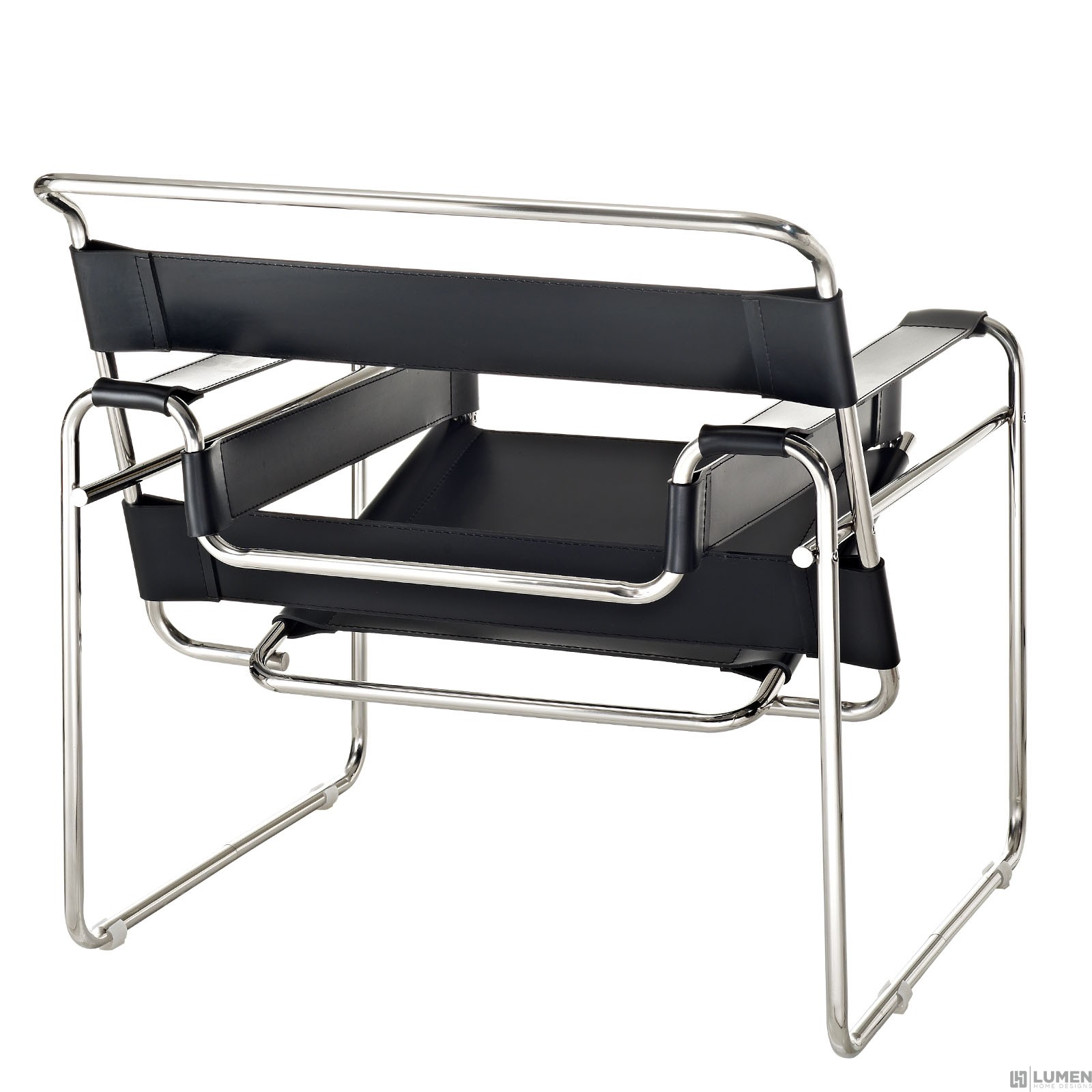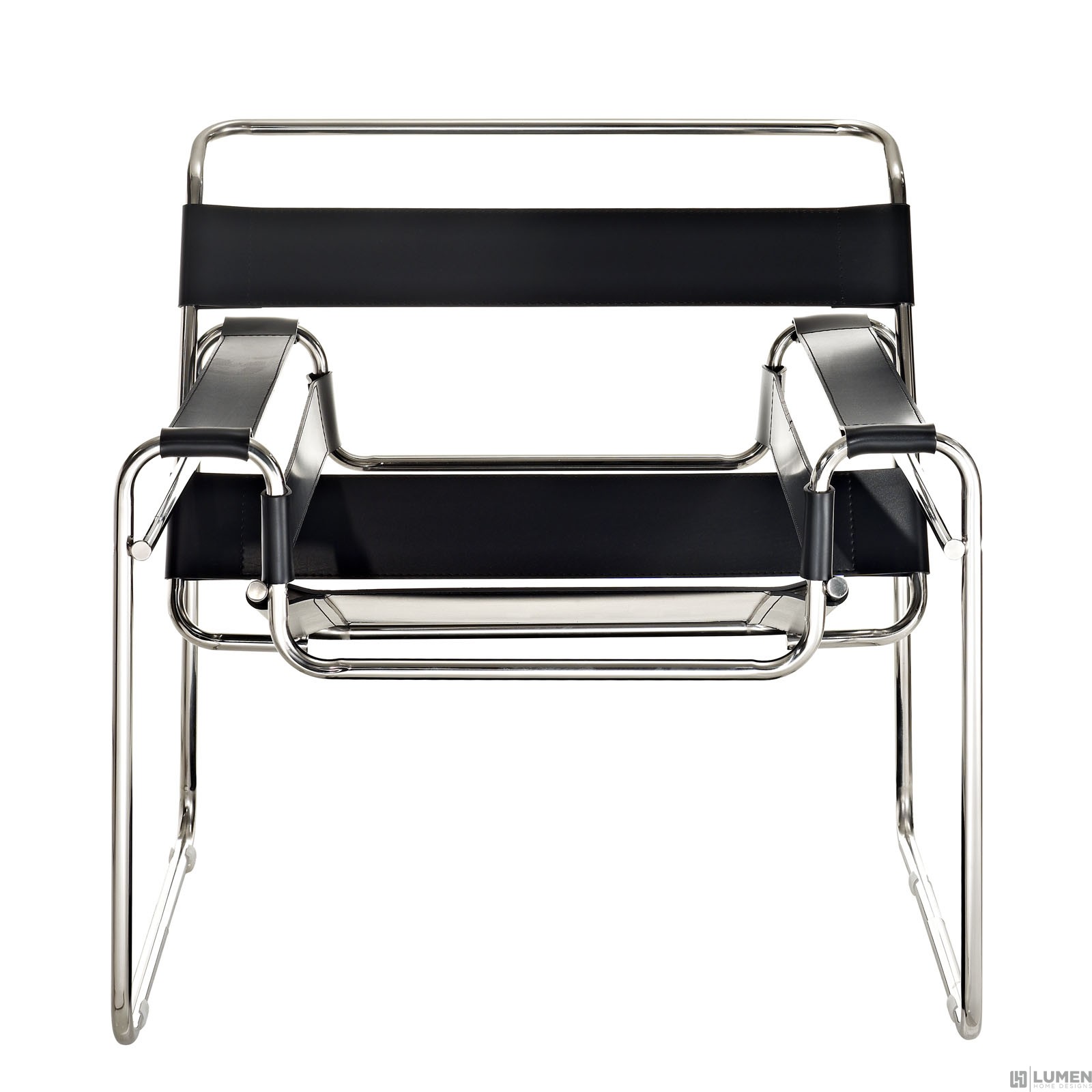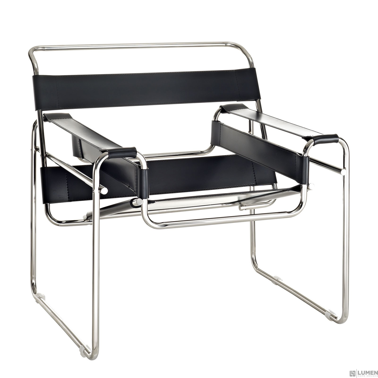Stainless steel frame Taut faux leather slings Rubber floor pads Fully assembled