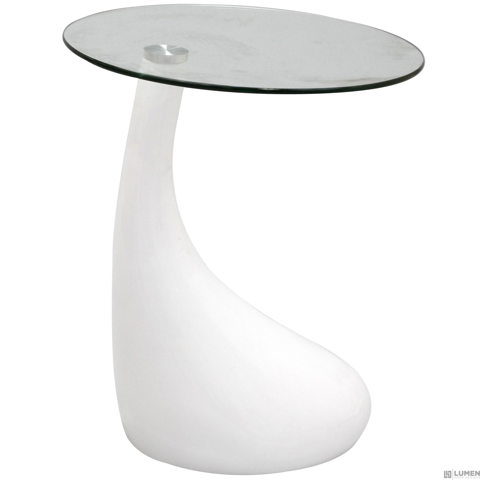 Short Description Perfect living room accent piece Sleek body with an arching curve Fiberglass body with clear tempered glass top