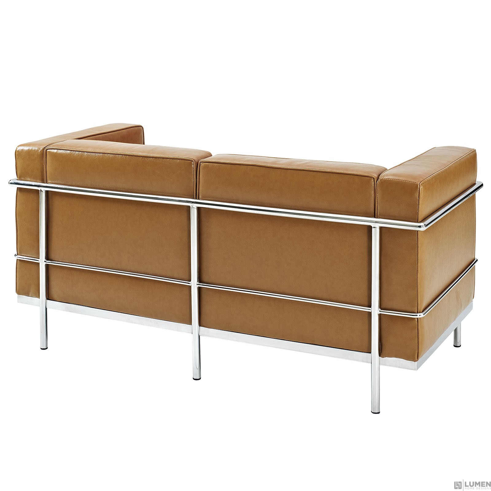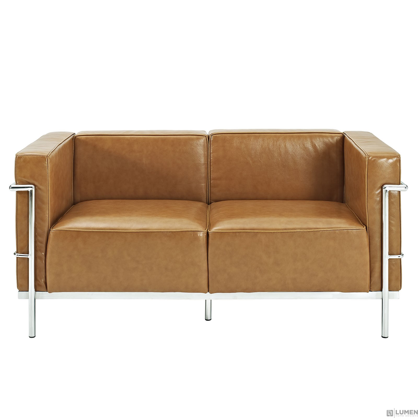 Short Description Mid-Century Modern Loveseat Genuine Leather Seating Surface Foot caps to prevent scratching Tufted seat and back with buttons