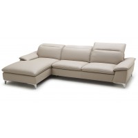 Short Description Laid back looks meet casual elegance in this comfy premium sectional. It's high quality padding comes upholstered in rich imported leathers for a high end look. The built in chaise will be the seat everyone will fight over. For extra versatility and relaxation, this sofa features adjustable headrests on all seats. They can each be turned up or down independently. This elegant sectional will look right at home in any living room, family room or entertainment space. Its dimensions make it suitable for any size room, and can comfortably sit up to six people. Choose your side: it's available in both right or left facing configuration. Choose your color: finished in Taupe or White. Essentials about this piece: • Expertly upholstered in authentic leather and stainless steel. • Right or left facing chaise. • Adjustable headrest and back height. • High elastic springs. • High density foam. • Some assembly required. • Color scheme: Taupe or White. • Dimensions: 36.5" H x 115.7" L x 67.7" D.