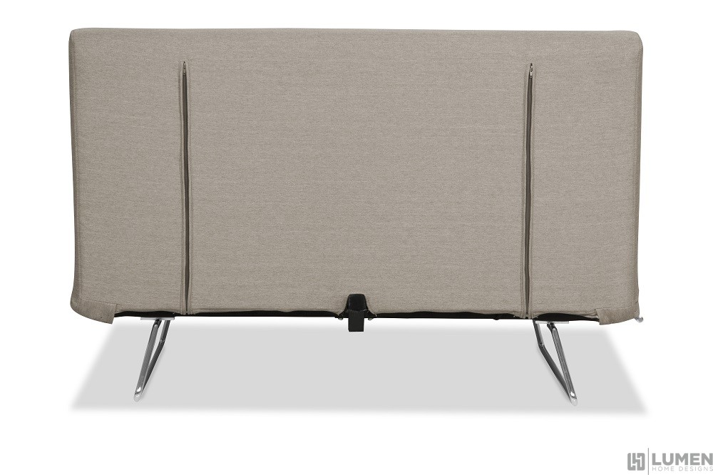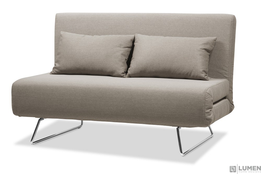 Deep seats and injected foam padded cushions leave this sofa ready to handle all kinds of heavy duty traffic. Its sleek minimalist lines come upholstered in durable premium fabrics, which can be spot treated and easily wiped clean in case of spills. This sofa also doubles as a comfy bed for overnight guests. The dimensions of this sleeper make it suitable for spaces of any size, especially those with compact layouts. The sofa can comfortably sit up to two people. This sofa is available in beige. Essentials about this piece: • Expertly crafted from injected foam upholstered in premium fabrics. • Stainless steel legs. • Includes two bolster pillows. • Some assembly required. • Color scheme: Beige. • Dimensions: 30.1" H x 35.4" L x 52" D.