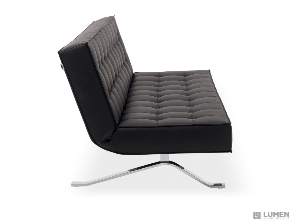 Our tufted modern sofa sleeper has all the traditional details you're looking for in a size that fits your space. Featuring soft tufted seats and strong stainless steel legs, it pulls off double duty as a sturdy couch and a comfy bed for overnight guests. You can even layer an additional mattress atop it for added relaxation. The dimensions of this modern sleeper make it suitable for spaces of any size, and can comfortably sit up to two people. This sofa is available in black leather. Essentials about this piece: • Expertly upholstered in premium leatherette. • Stainless steel legs. • Some assembly required. • Color scheme: Black. • Dimensions: 31.5" H x 64.5" L x 34" D.