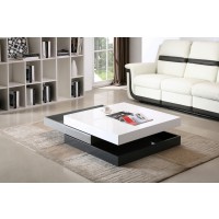 Short Description Be a proud owner of re-configurable 3-layered Coffee Table in elegant 3-tone lacquer finish. The top and middle divisions can pivot 360 degrees and are painted white and gray, respectively. The latter is also designed to function as a storage compartment. The base section, on the other hand, is stationary and dark gray in color. This finely crafted and fashionable furniture piece can definitely make any modern day living room cozier, as well as classier.