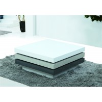 Short Description Level up your home decor with a modern 3-tone and triple layered Coffee Table that can easily be integrated with any modern decor. Inspired by one of our bestselling coffee tables, this splendid piece that features an ascending White to Dark Gray color scale is finely crafted from high-quality framing and finishing materials and sports a high gloss lacquer appearance. The top and middle section can be pivoted by 360 degrees, allowing you to change the design profile at will to suit your taste and desired usage.