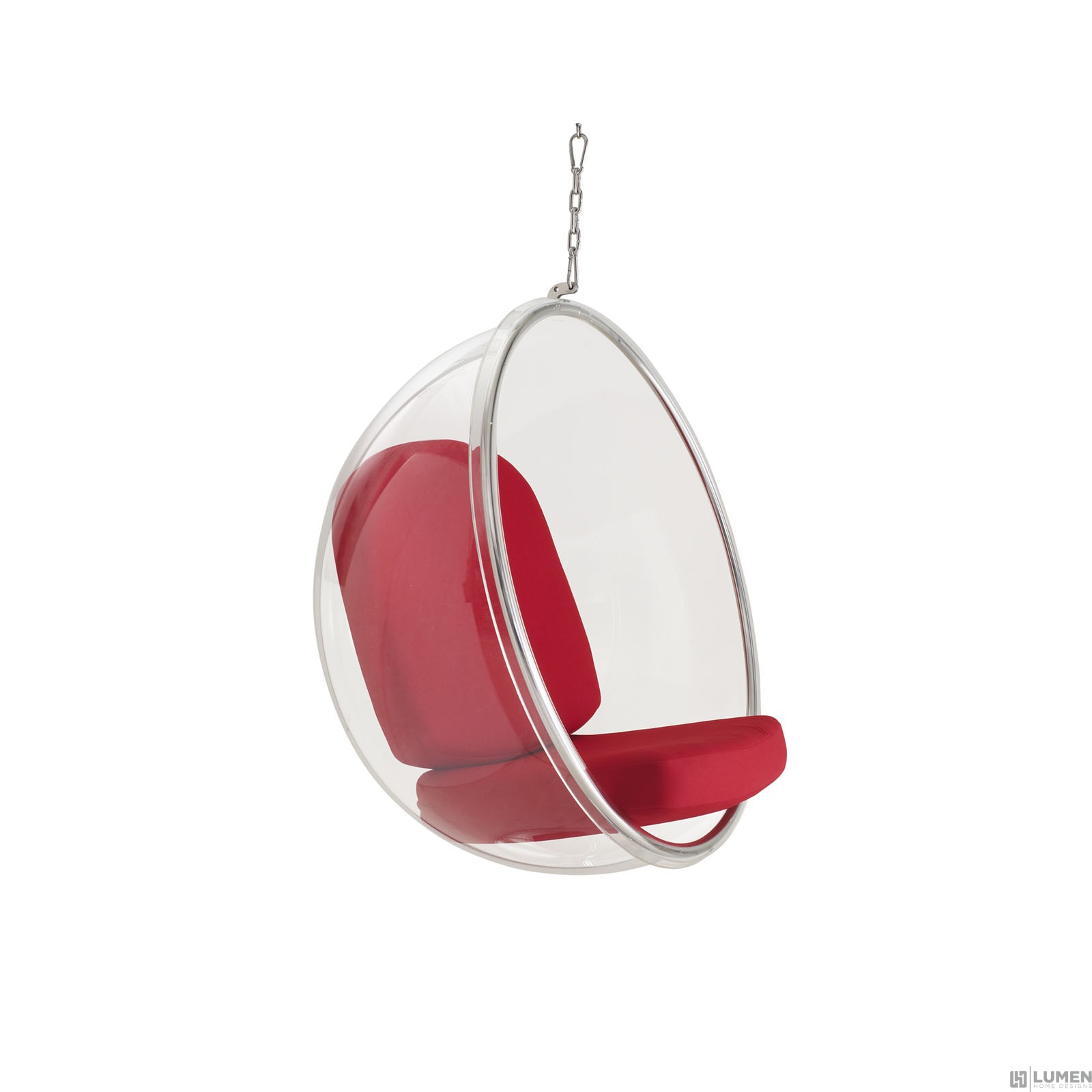 Short Description Clear Acrylic Steel Rim Vinyl Cushion Weight Capacity: 265 LBS 6 ft Ceiling Chain Included Stand Not Included