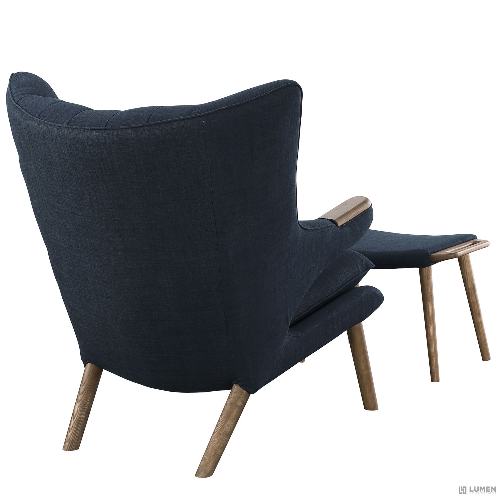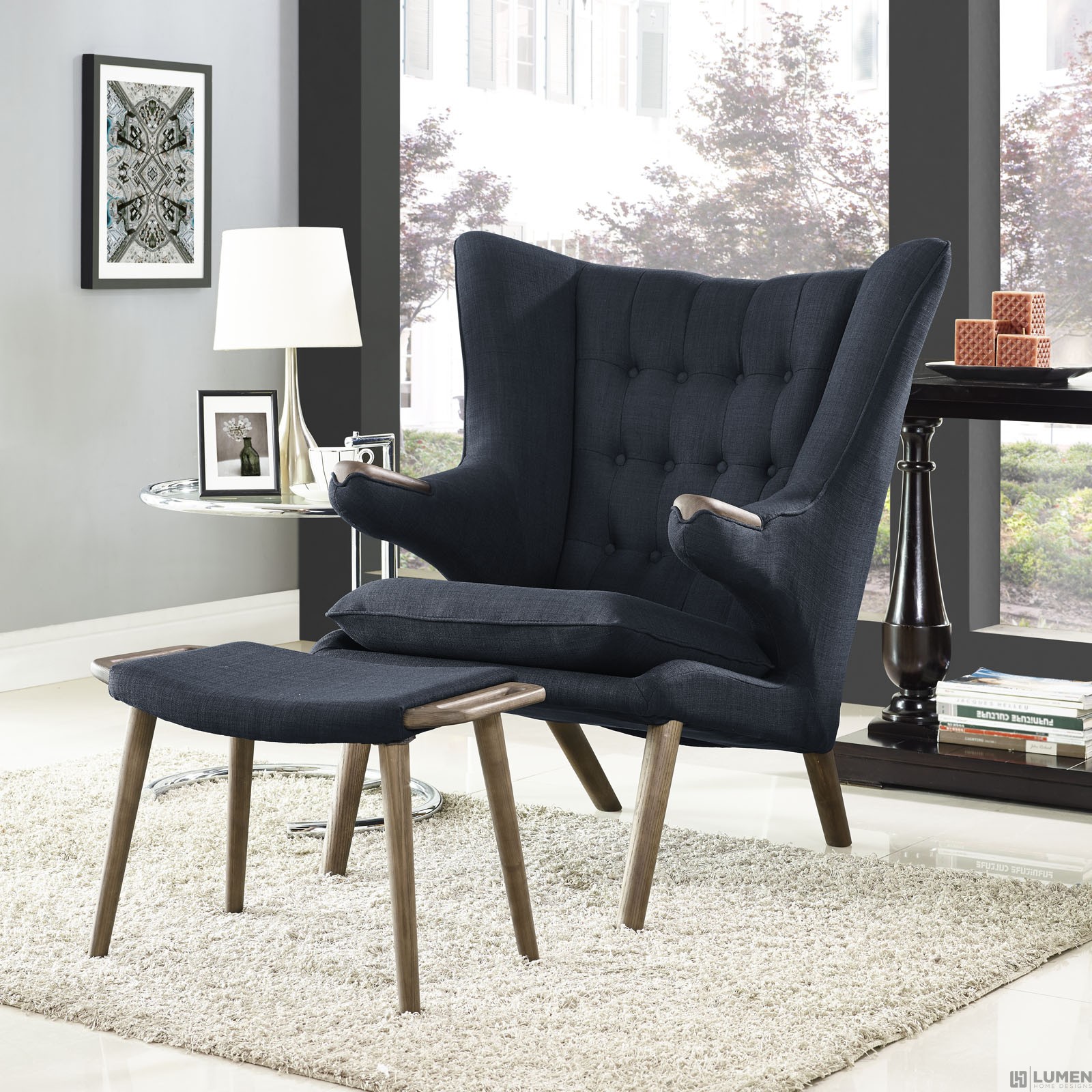 Short Description Modern classic lounge chair and ottoman Solid ash wood frame Foam padded cushions with woolen upholstery