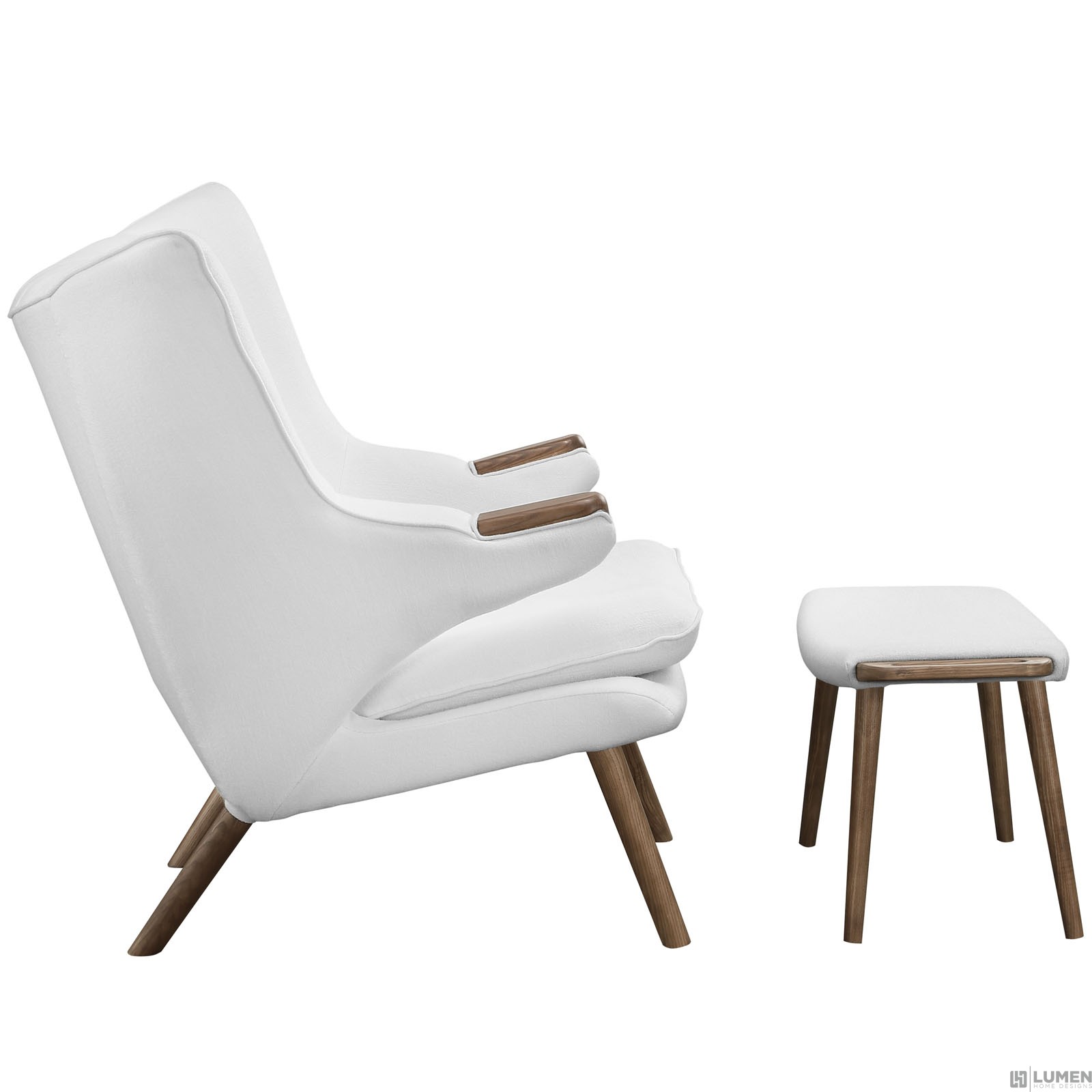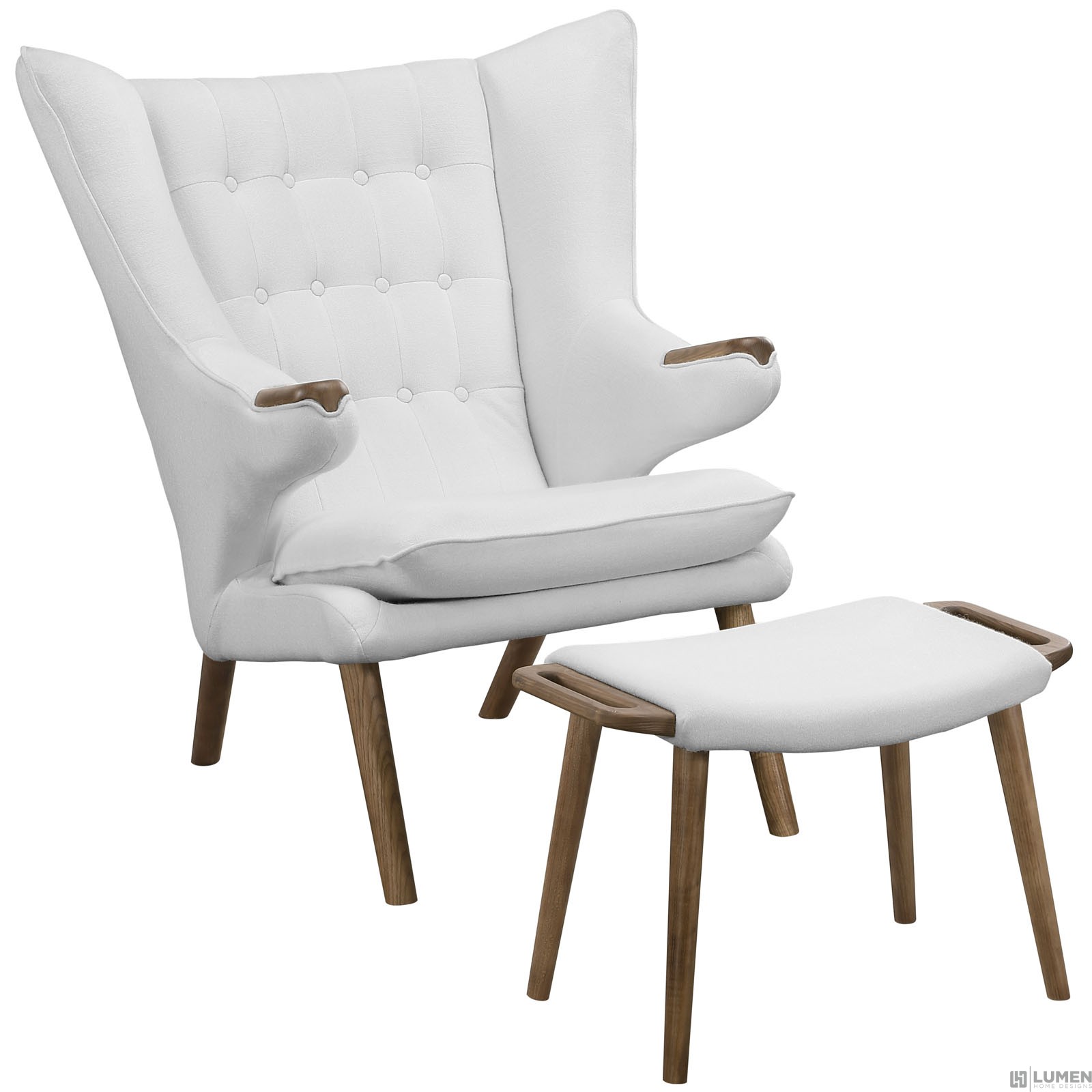Short Description Modern classic lounge chair and ottoman Solid ash wood frame Foam padded cushions with woolen upholstery