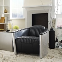 Short Description Modern Lounge Chair Polished Stainless Steel Sheets Ribbed Vinyl Upholstery Plastic Foot Glides Dense Foam Padding