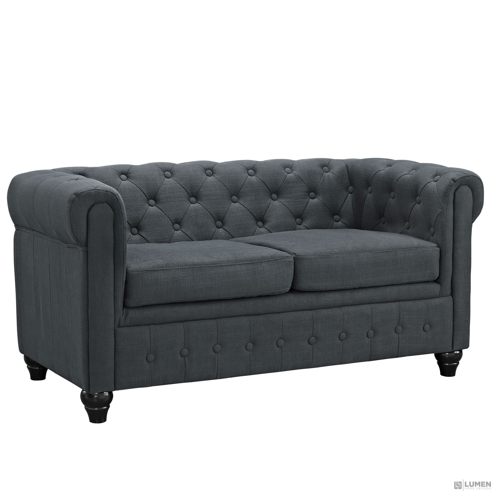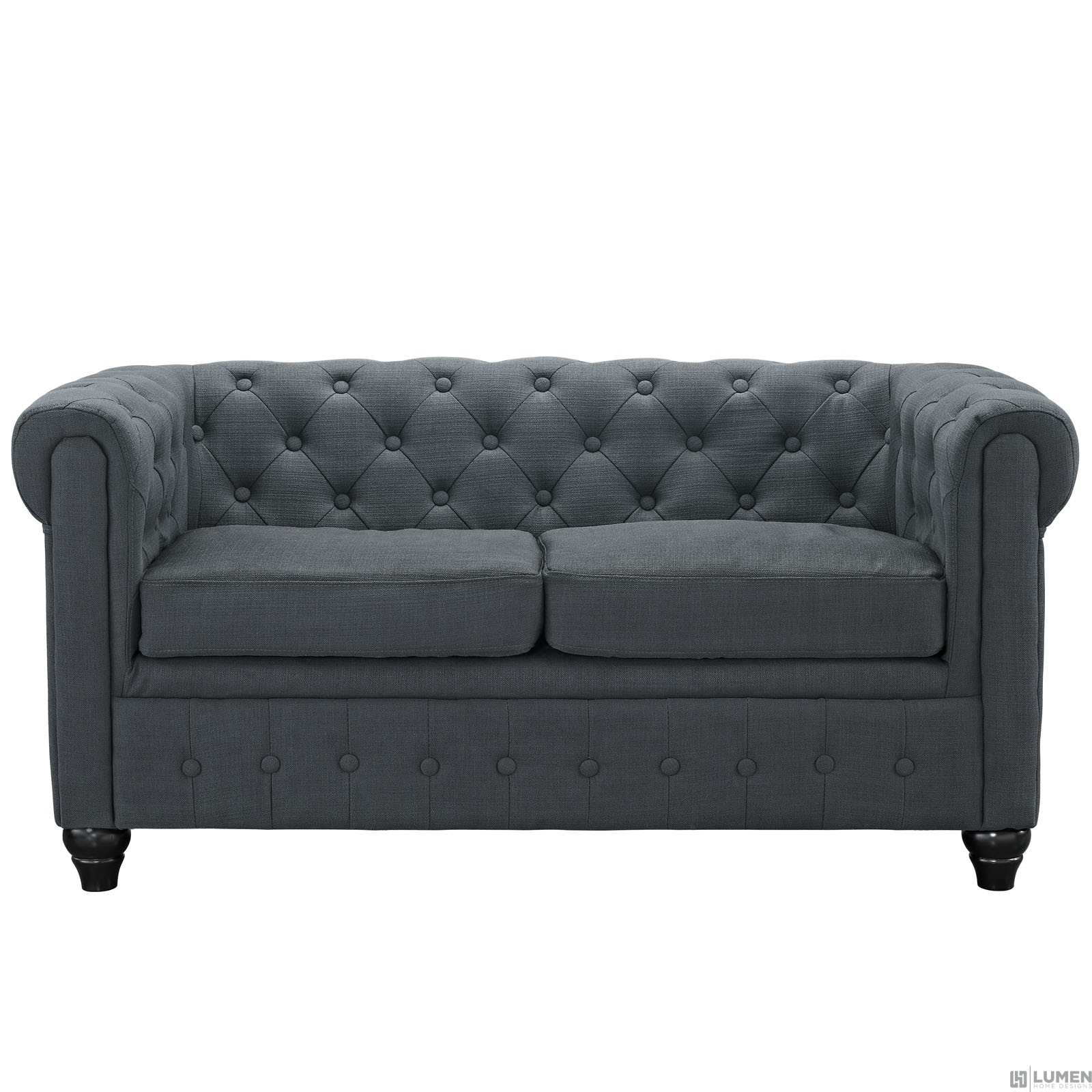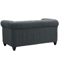 For Areas Seeking Cultured Elegance Tightly Tailored Rolled Arms Deep Tufting for Maximal Effect 100% Polyester Upholstery Solid Rubberwood Legs Non-Marketing Foot Caps