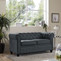 Short Description For Areas Seeking Cultured Elegance Tightly Tailored Rolled Arms Deep Tufting for Maximal Effect 100% Polyester Upholstery Solid Rubberwood Legs Non-Marketing Foot Caps