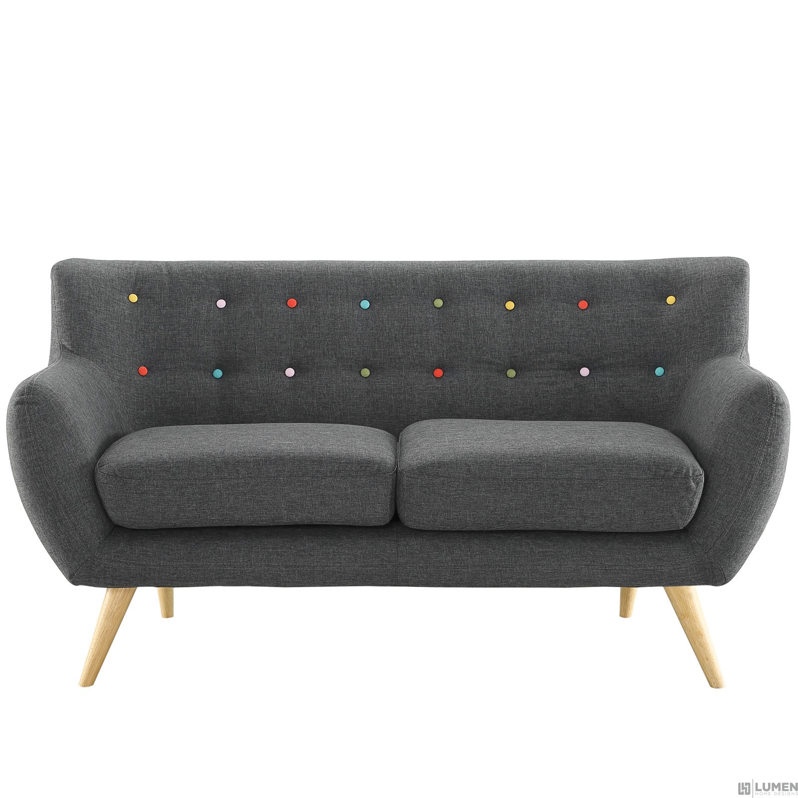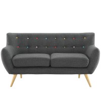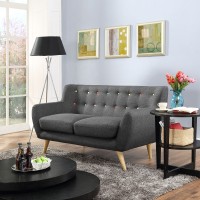 Mid-century modern style Loveseat Natural color rubber wood legs Non-marking foot caps 100% polyester material No assembly required Chair Weight Capacity - 441 lbs.